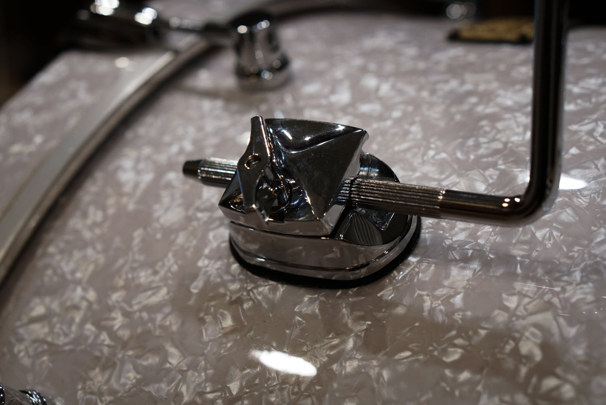 A Canopus Neo Vintage kit from the personal collection of Billy Ward. 14x22" kick, 9x13" tom, 16x16" floor tom. Built out with Steve Maxwell reproduction rail mount, triple-flanged hoops, and Canopus cymbal L-arm.
