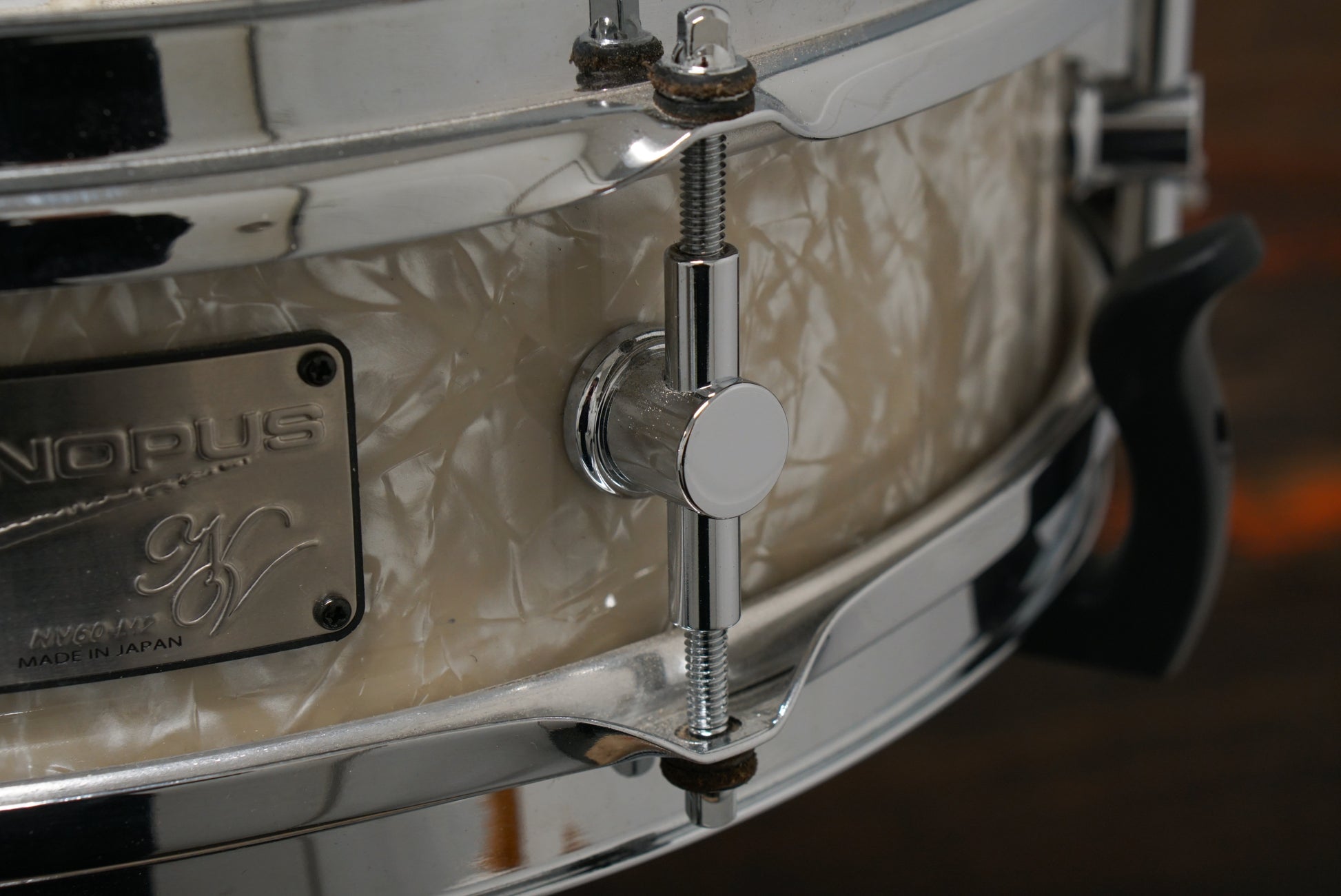 "For our NV 60 M2 we analyzed the drum sound that stormed the rock world in the 1960s, resulting in a snare drum that brings a unique tone and resonance to any musical situation. Unique Canopus design and engineering allows maximum head vibration – creating a warm, full resonance in the whole drum, in stark contrast to the focused projection of many modern drums. Thin 1.6 mm pressed hoops that are customised for the NV60-M2 shells further refine the crisp and clear sounds – recreating the nostalgic sensation of a vintage snare and cleanly articulating every audible stroke.