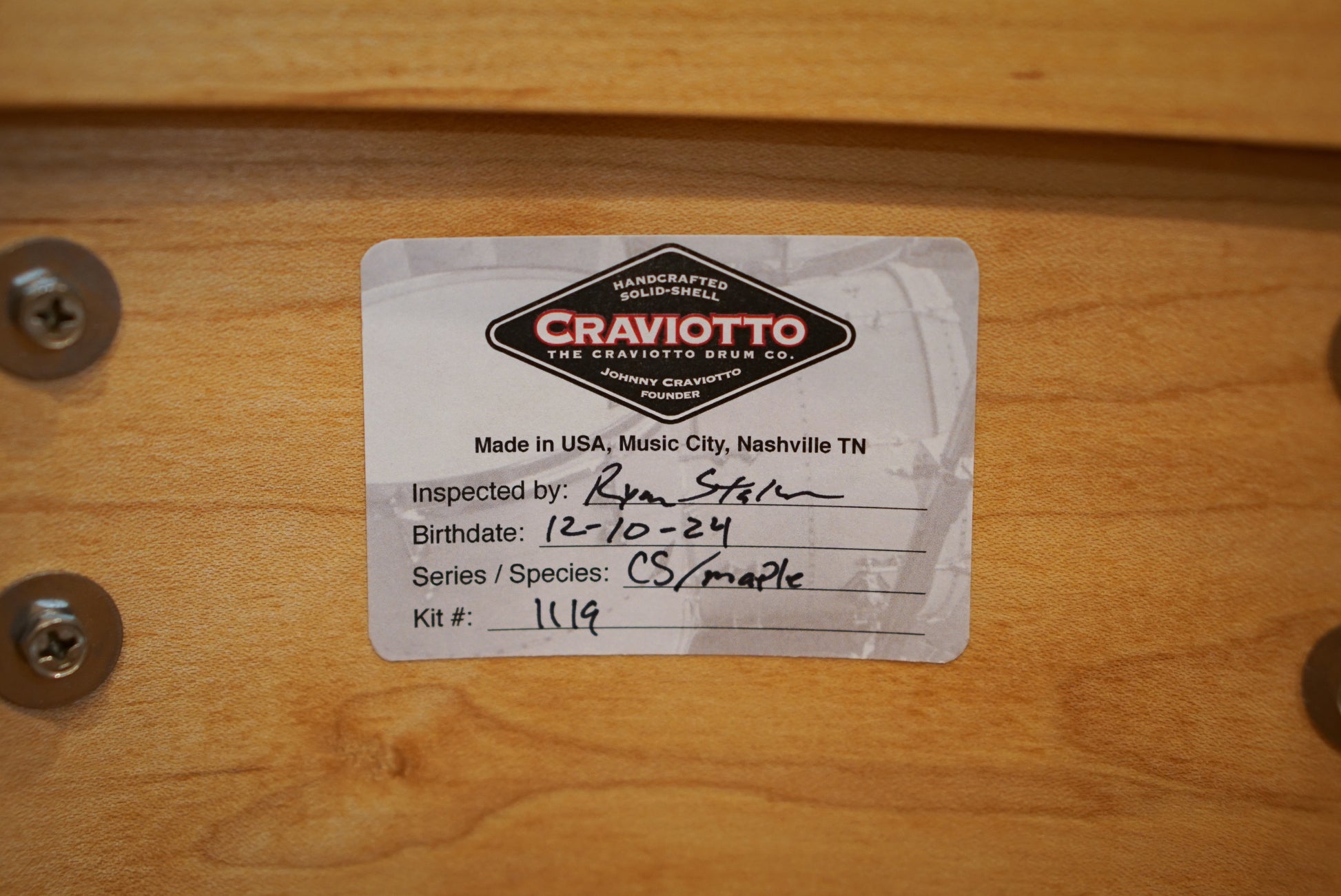 "Maple is the standard tone wood for Craviotto. It was Johnny's favorite species and can do it all. You'll love the rich tone, mid-range projection, and timeless beauty.