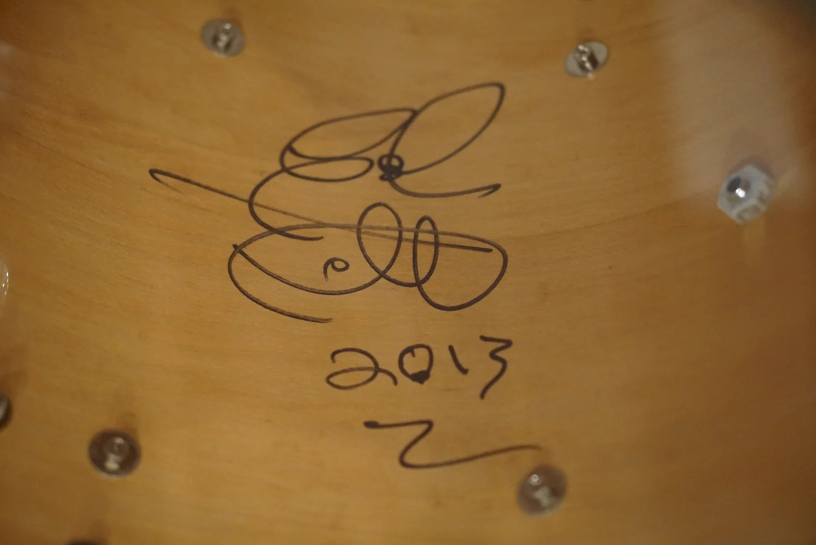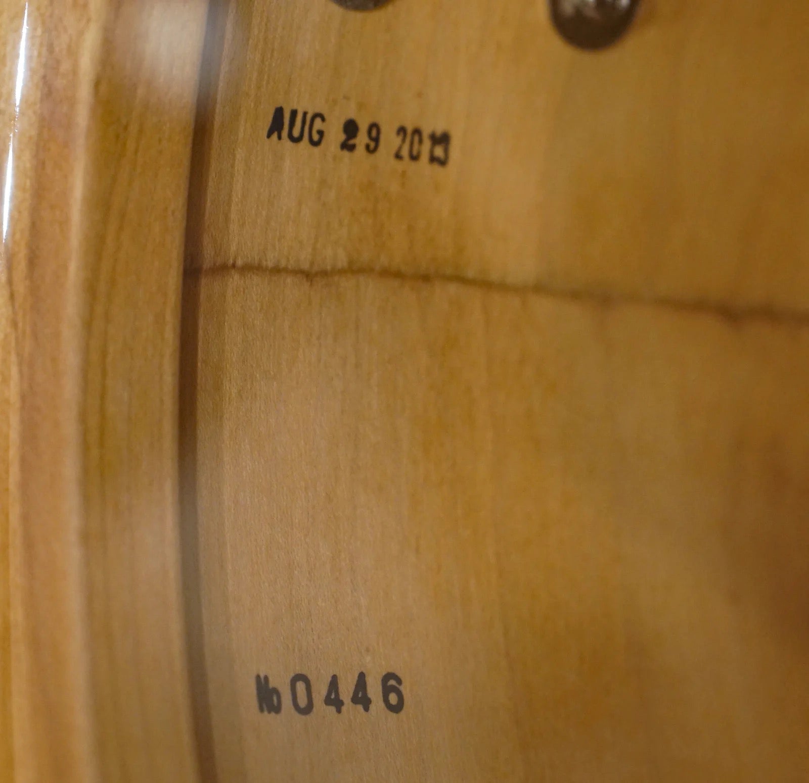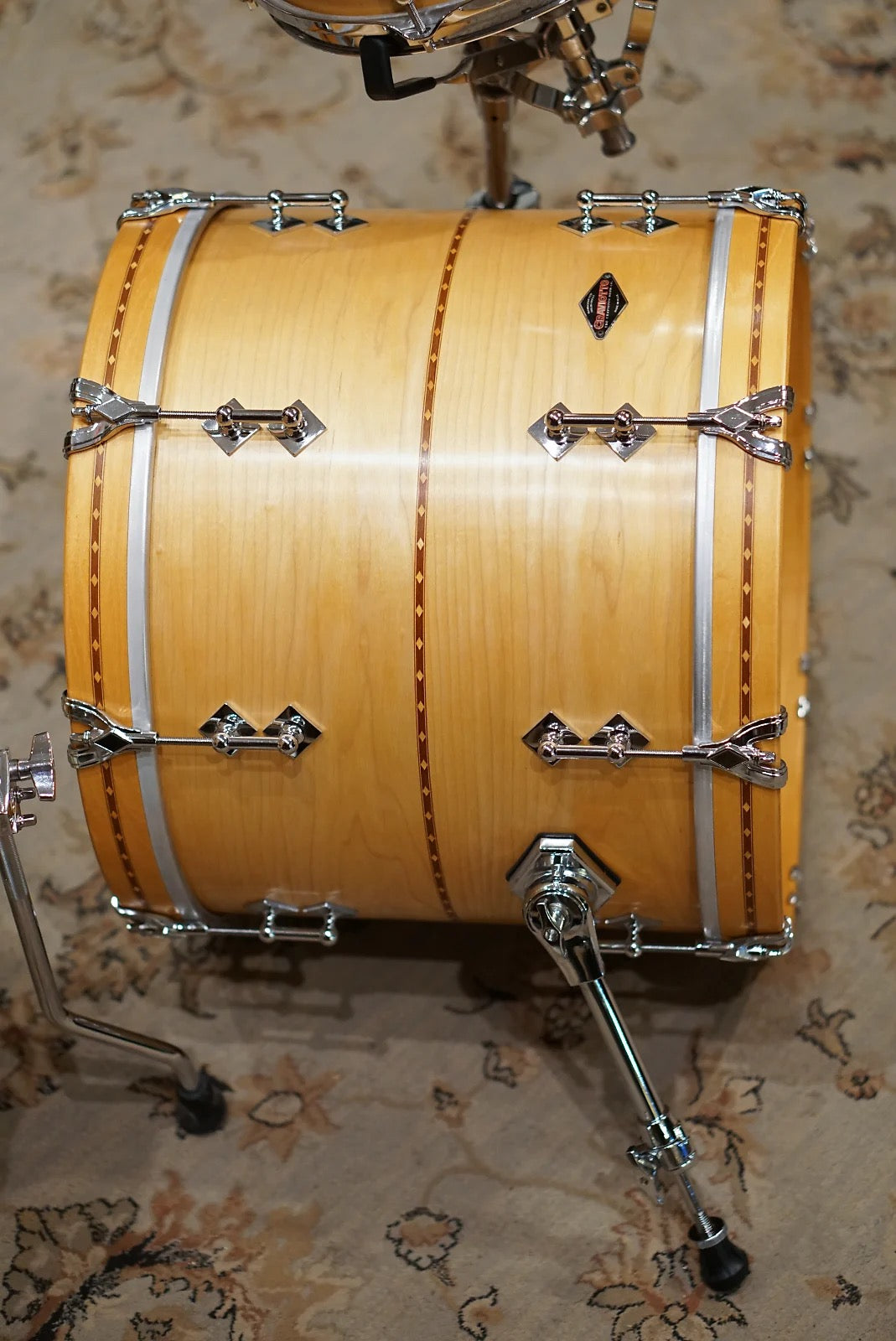 What a treat to see this maple kit from 2013 (No. 446) in 100% original, played only for a few hours. Classic bop sizes (14x18" kick, 8x12" tom, 14x14" floor tom) with chrome-plated hardware, diamond inlay, and of course Johnny's famous single-ply, steam-bend shells.