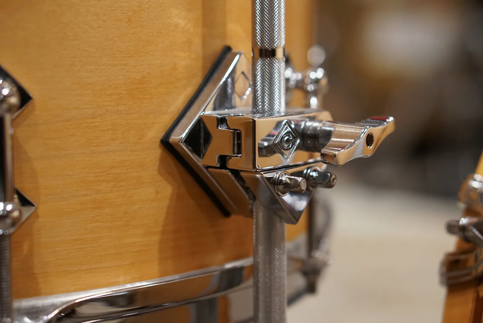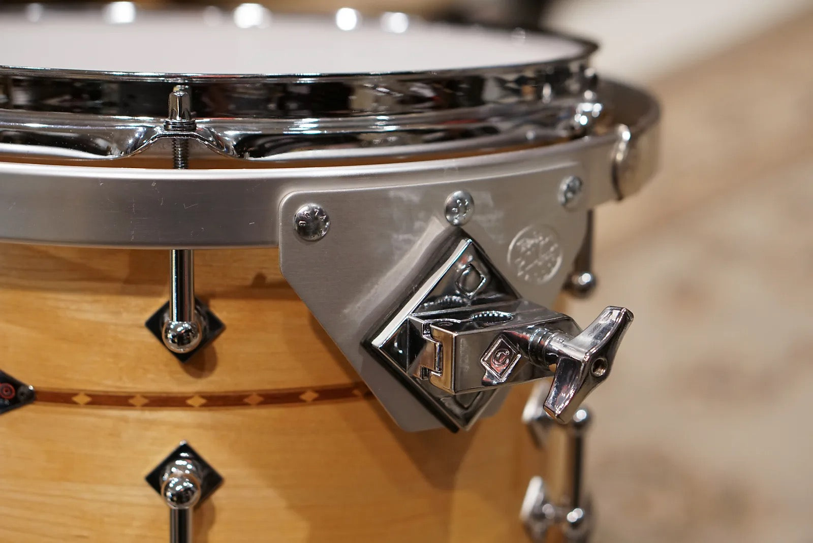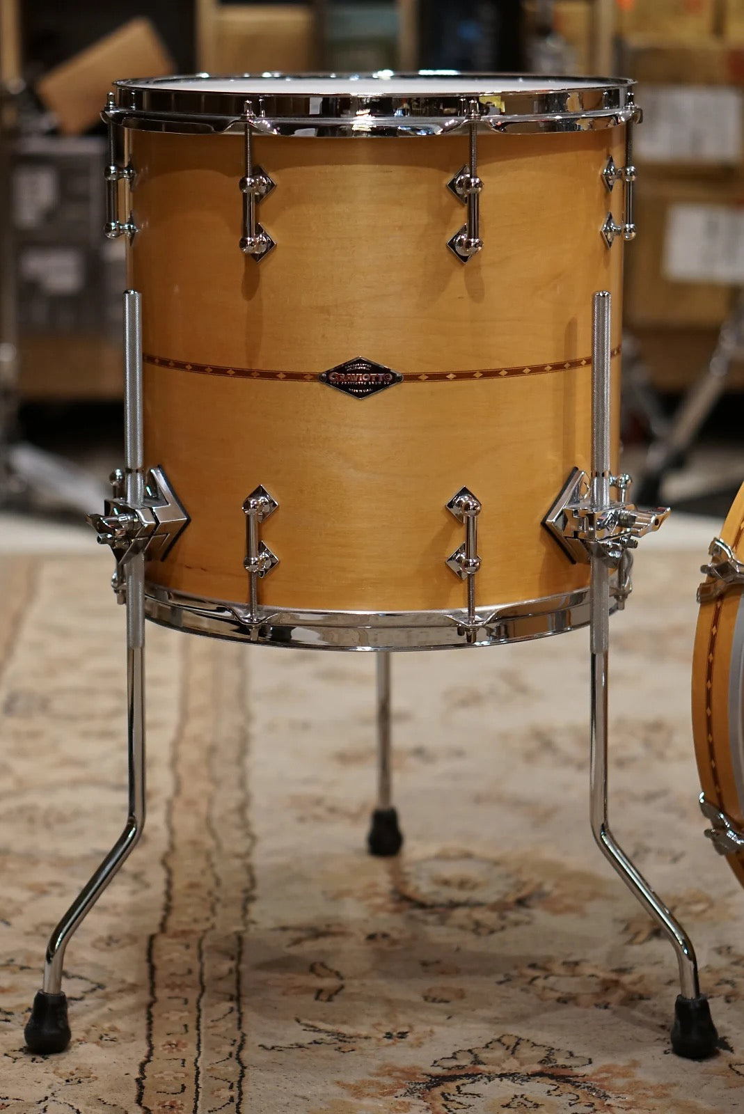 What a treat to see this maple kit from 2013 (No. 446) in 100% original, played only for a few hours. Classic bop sizes (14x18" kick, 8x12" tom, 14x14" floor tom) with chrome-plated hardware, diamond inlay, and of course Johnny's famous single-ply, steam-bend shells.