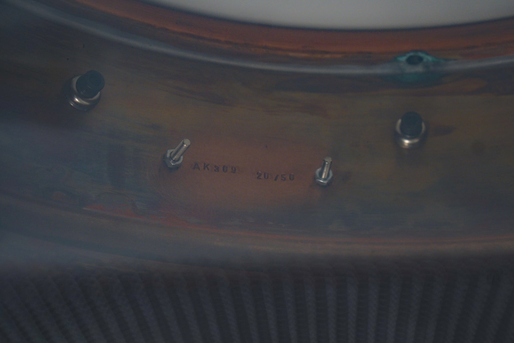 This is number 20 of only 50 of Craviotto Master's Metal Diamond Series Copper 6.5x14" snare drums. Dates to 2009. Shell made by Adrian Kirchler with vintage-style three-point strainer, ten tube lugs. These don't pop up very often these days, and especially not in this condition.