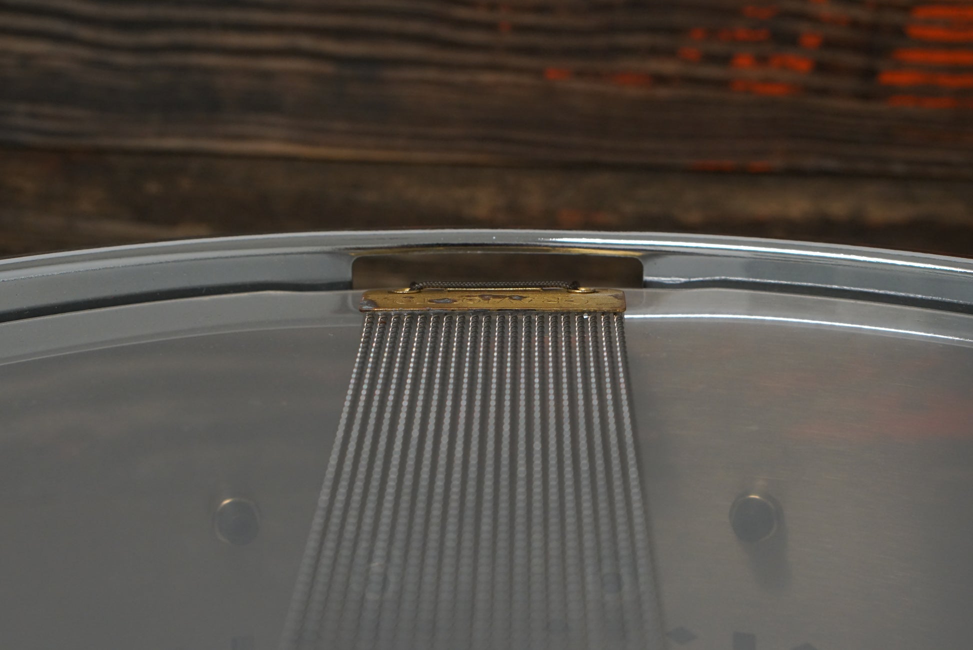 This is a beautiful pre-owned Craviotto 5.5x14" Solitaire Titanium Snare Drum in Pewter, in excellent+ to near-mint condition. These were a limited run build in coordination with the Trick Drum Co, limited to 25 drums. The shell is a lightweight, hand-rolled Titanium with 45-degree bearing edges with a diamond-shaped vented design. Ten tube lugs, Trick throw-off, and triple-flanged hoops.