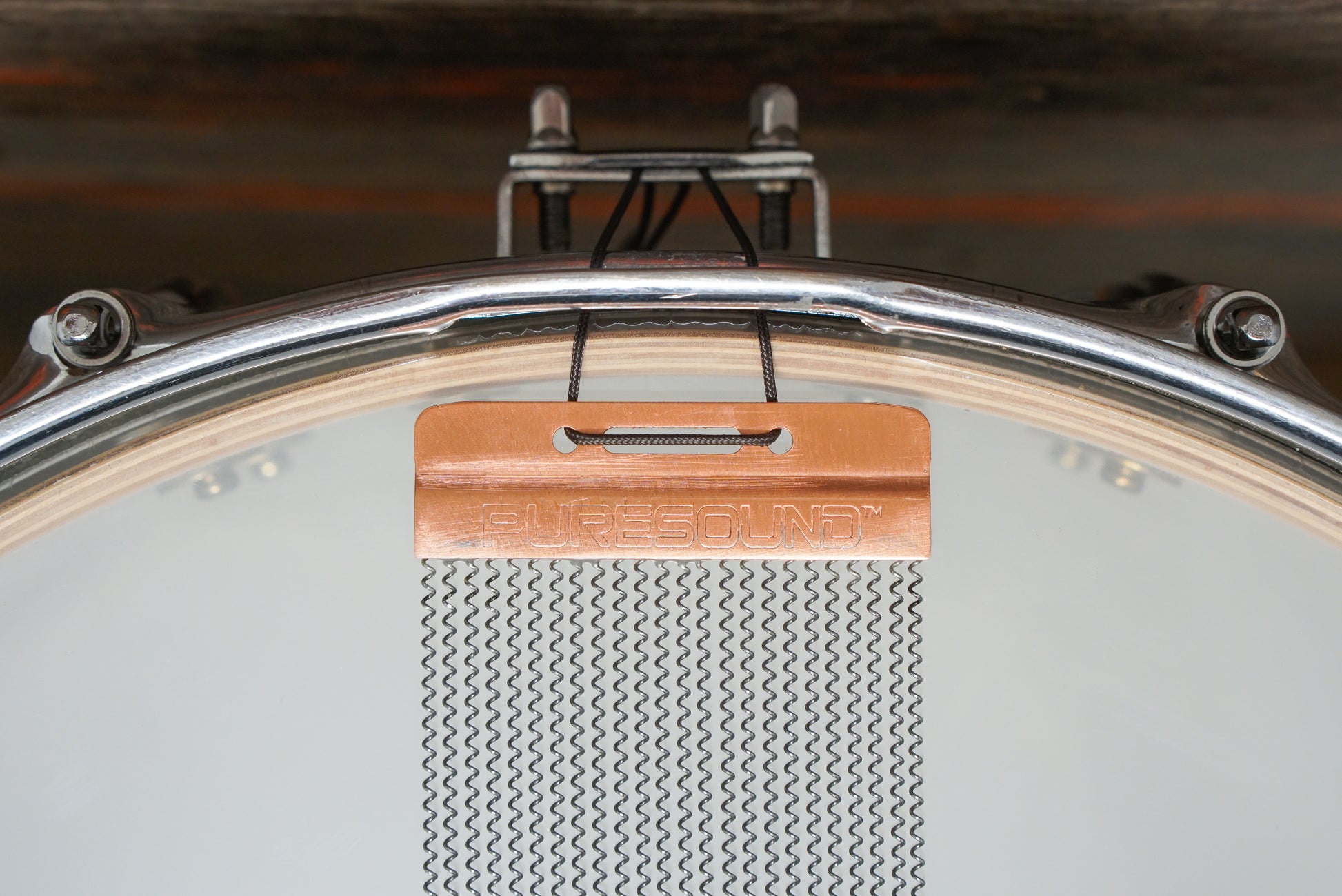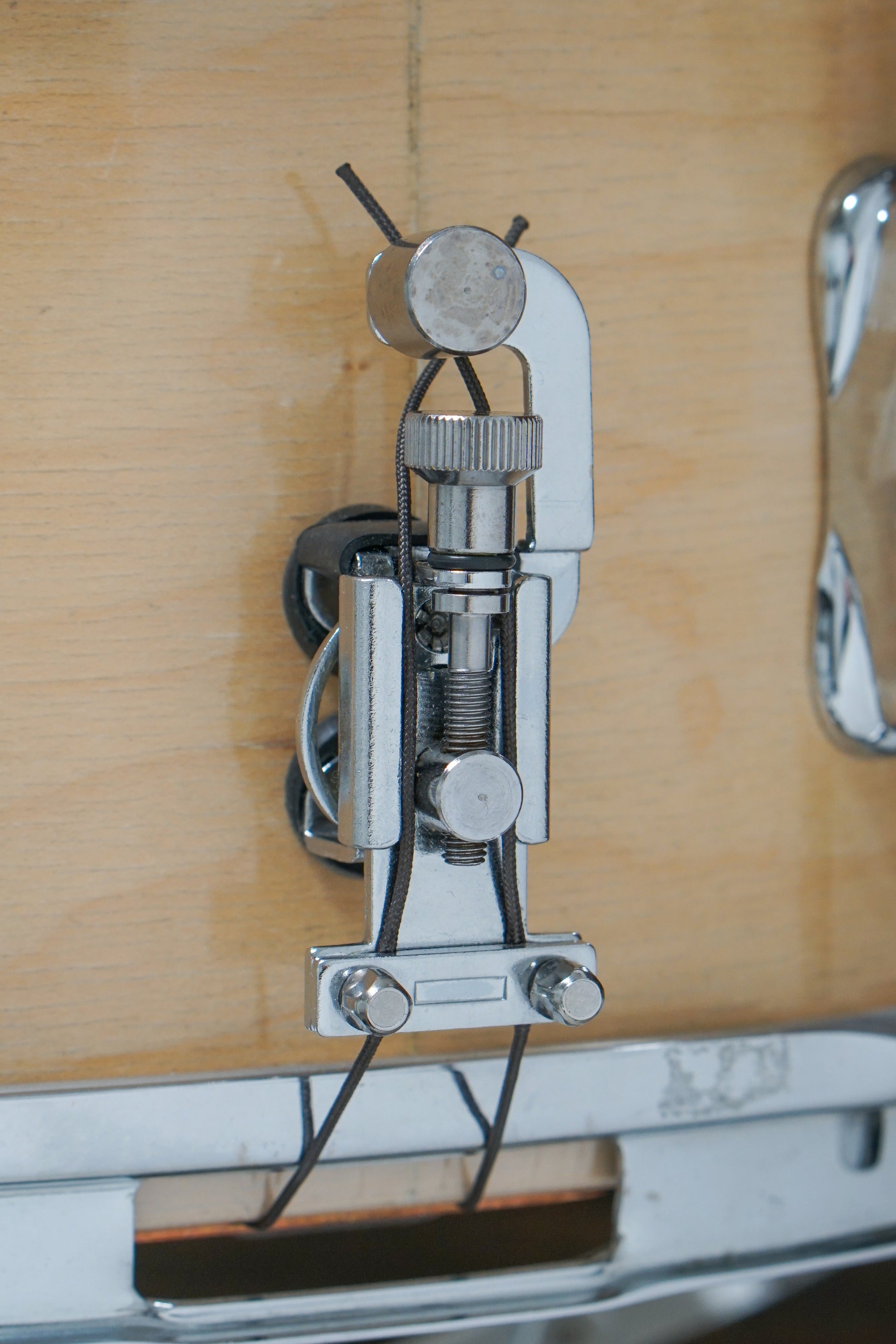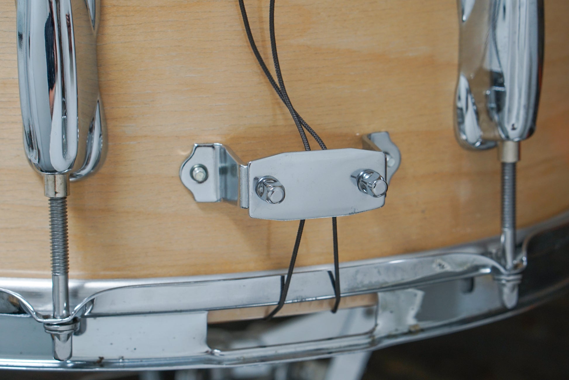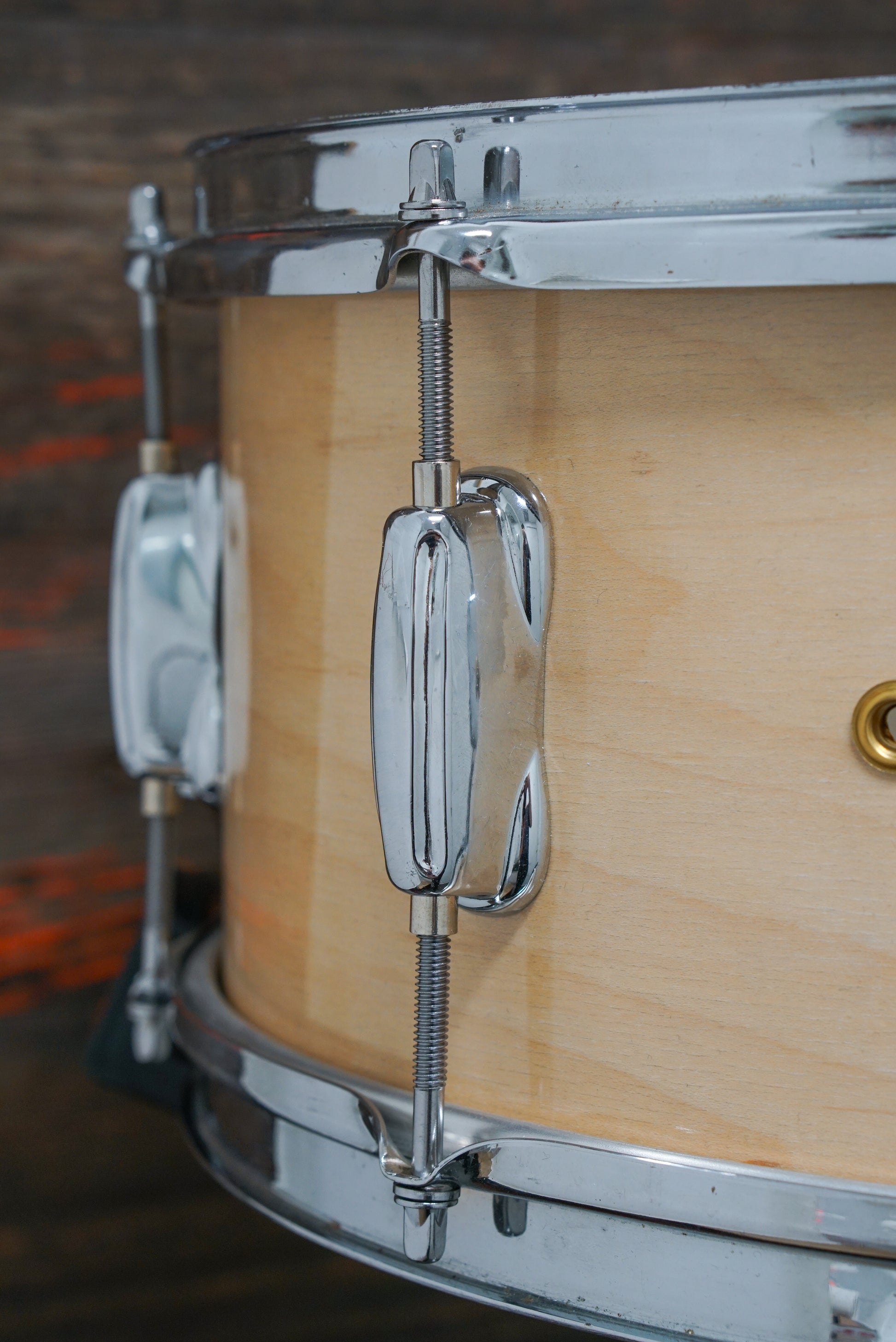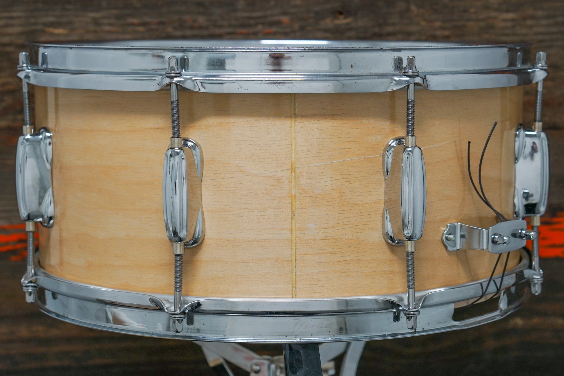 A great sounding custom-made snare with an 8-ply shell, Slingerland-style lugs, triple-flanged hoops, Gibraltar throw-off, and brass grommeted vent. Sounds open and wet with a nice balance of projection and warmth.