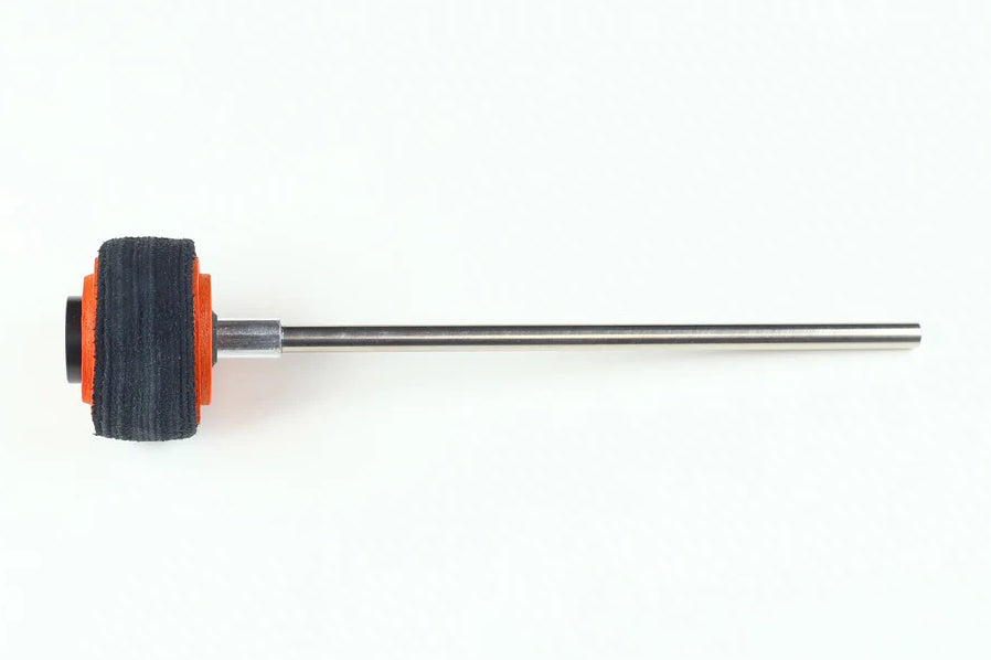 The suede has a clean, clear sound ideal for smaller bop-style 16” or 18” inch bass drums; but has an underlying warmth not found in typical felt beaters and can cut through on “20”, “22,” or even “24” bass drum with punch and tone. This beater also maintains a consistency of sound on all forms of batter heads, from calf-skin, fiberskyn, calf-tone, to ambassador mylar heads. Lastly it has the power to amplify through a clear or pinstriped head as well. Even though it’s designed from the perspective of a drummer who primarily specializes in jazz, Ulysses spends a lot of time producing and recording multiple genres in the studio; this beater vastly improves the sound of the bass drum for the purpose of recording. The UOJ Signature Bass Drum Beater is truly a great all-purpose, well-crafted and durable beater when clarity and dynamic range are your goal.