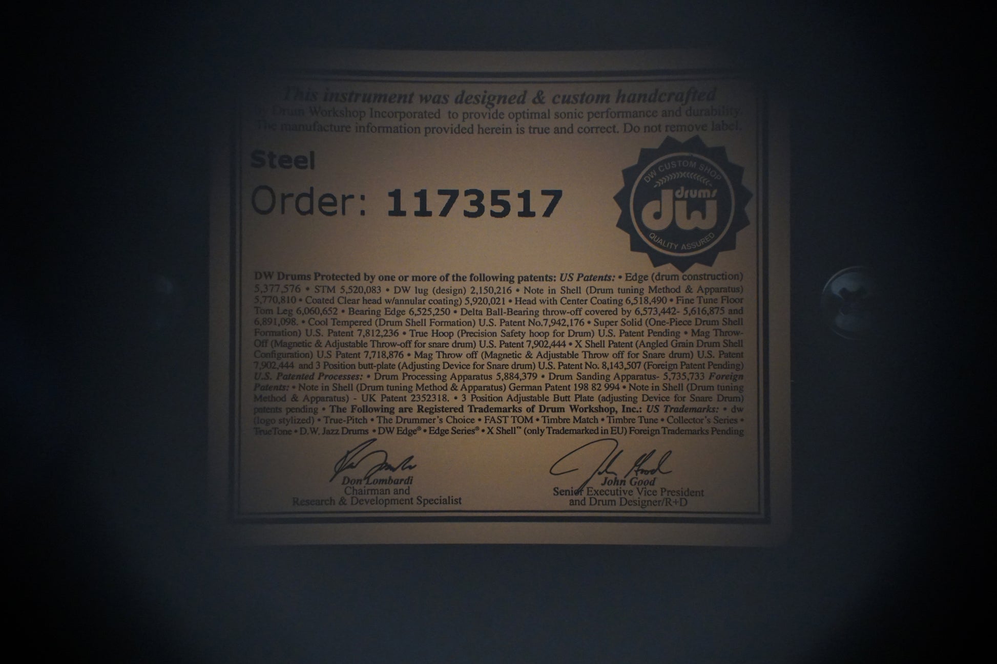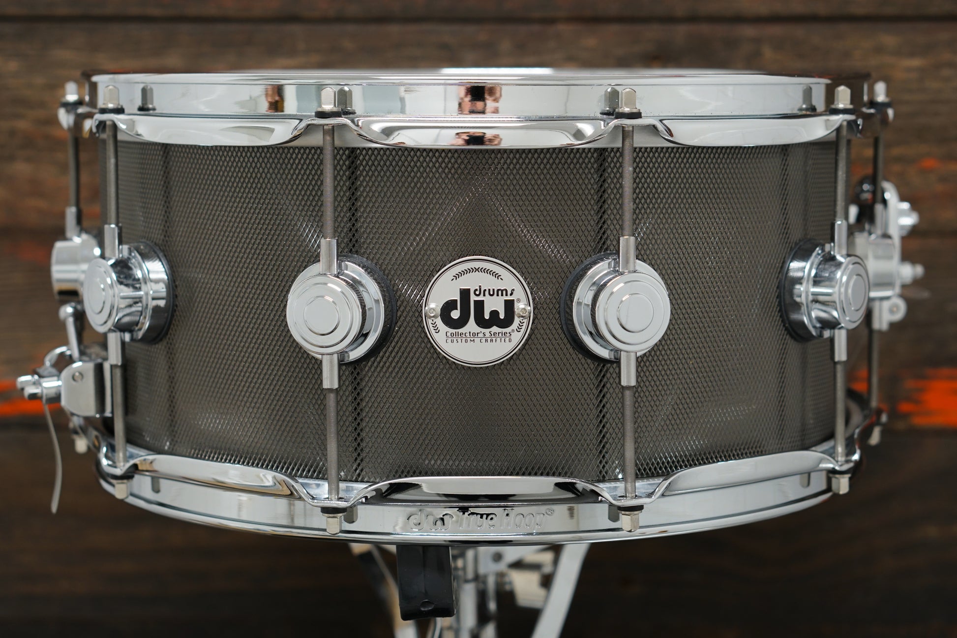 "Another heavy-gauge rolled shell, the Collector’s Steel snare drum includes an integrated reinforcement hoop for a more focused sound and is offered in both a chrome and knurled black nickel finish. Fitted with features such as premium DW Throw-off, TrueTone snare wires and DW Heads by Remo USA, Steel drums are loud and metallic with a projection perfectly suited for live applications."