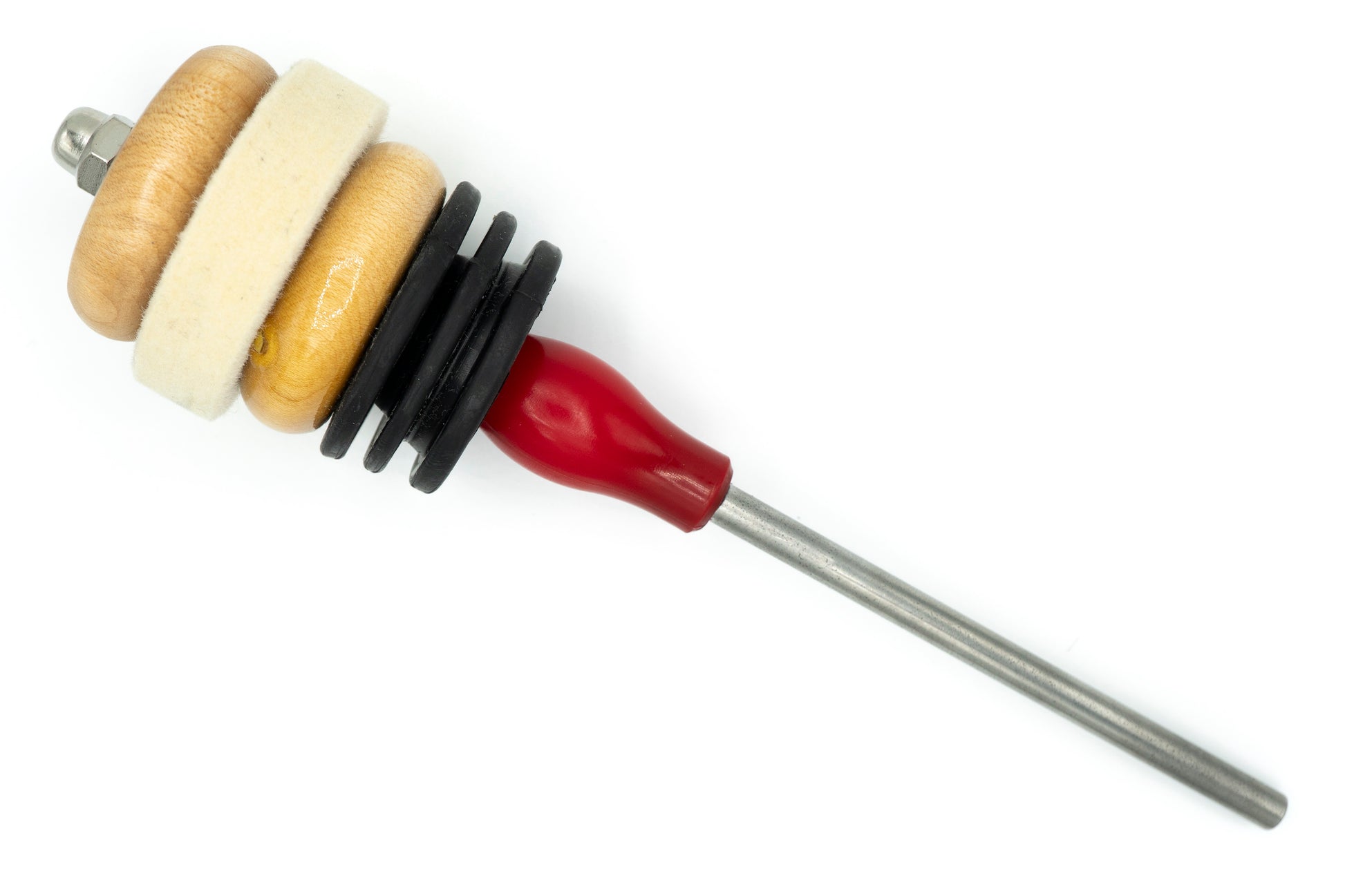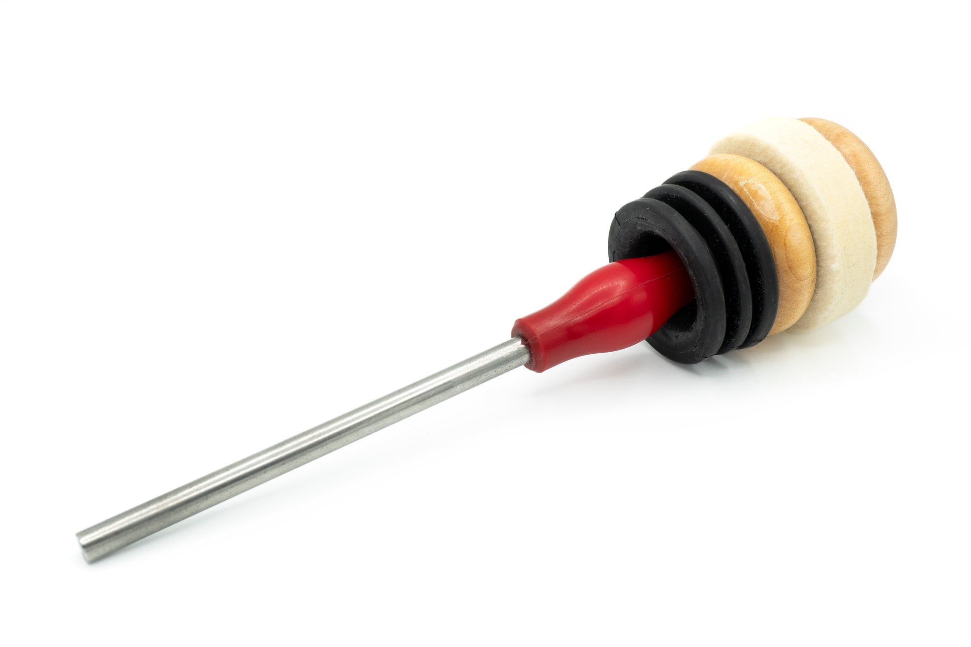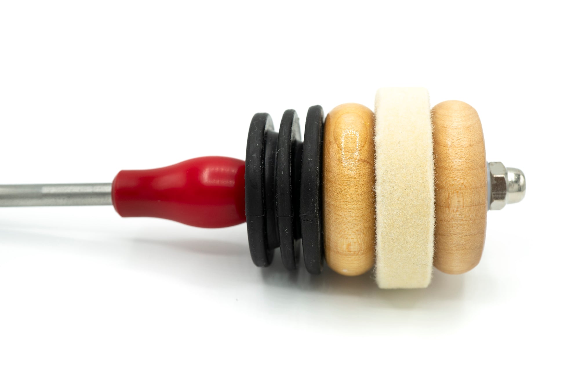 The FlexBurger is a BurgerBeater with a steel shaft and wood top and bottom sandwiching a felt burger. This is no ordinary felt. German wool piano felt. Combine that with the FlexBeater patented technology and you have an amazing combination. Three hitting surfaces here. The clarity of hardwood, the warmth of felt and and amazing punch from the rubber shoulder! All at your beck and call. No need to switch beaters because it's all there and ready to go.