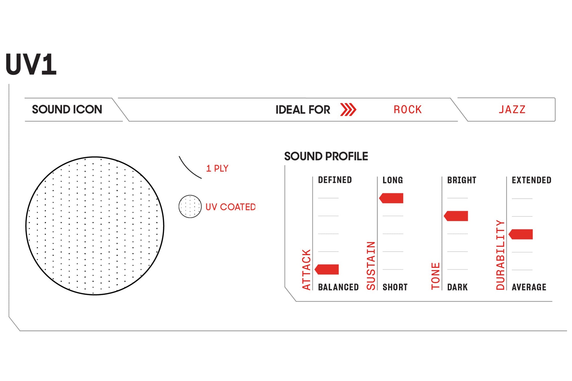 The UV1 drumhead is the most versatile and durable single ply head ever made. A single ply of 10mil film delivers a full range of musical expression while the patented UV-cured coating provides unmatched durability and consistency. UV1 tom heads have a very balanced attack, long sustain, moderate brightness, and increased durability over the average single ply. This coated drumhead also features Level 360 Technology.