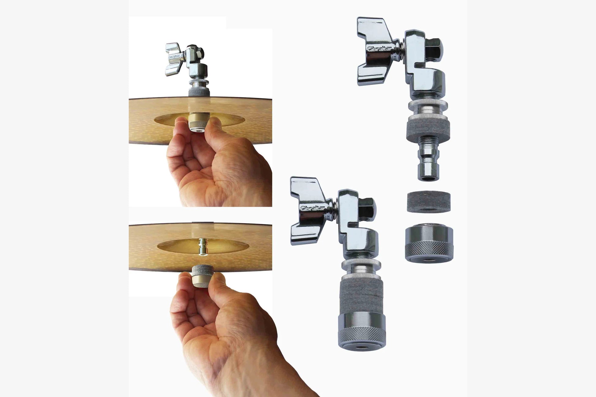 This revolutionary quick-release hi-hat clutch features a locking nut that quickly snaps onto the cymbal without threads, so vibrations will never cause the clutch to detach from the cymbal while playing.