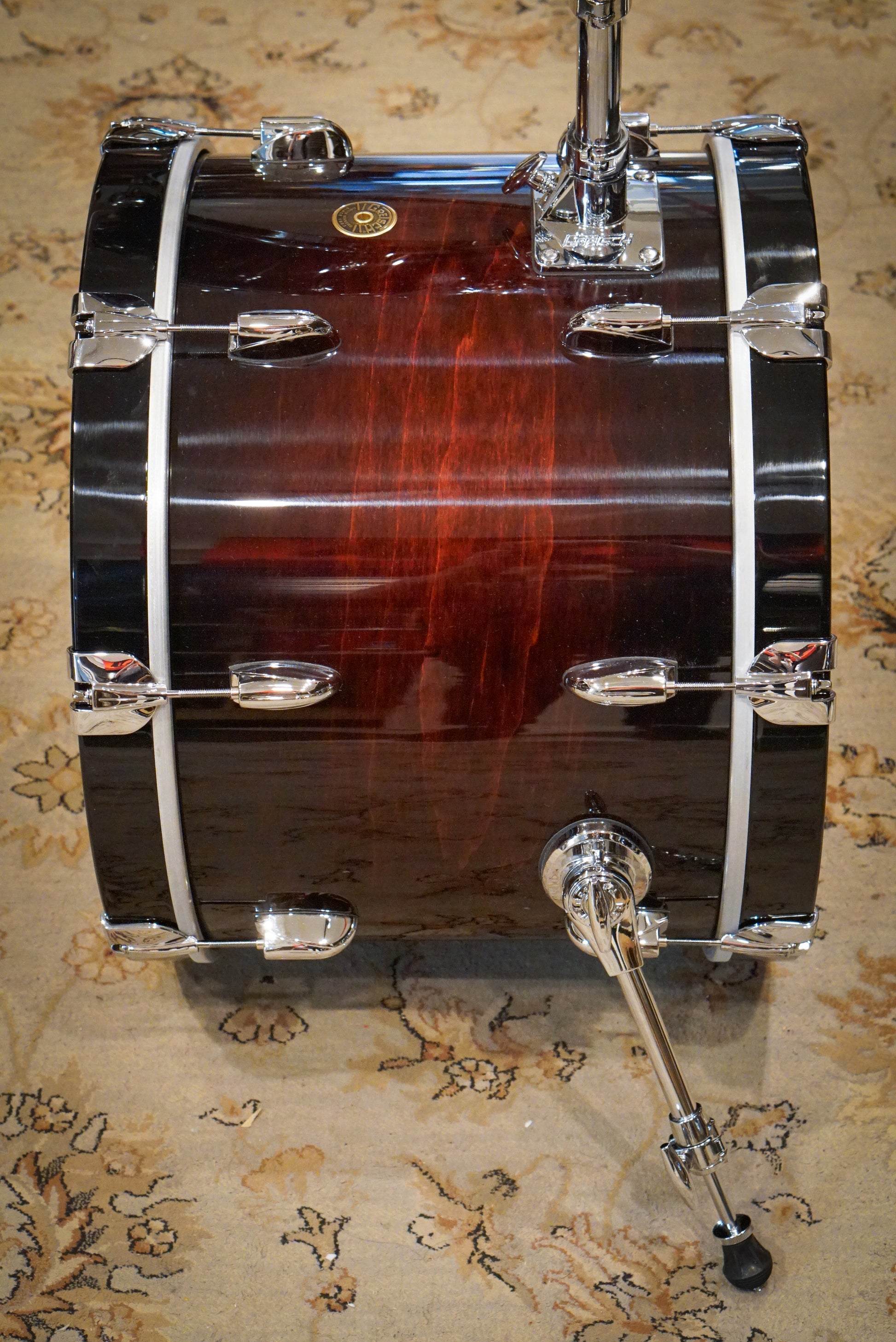 A brand new Gretsch Broadkaster kit in beautiful Chestnut Duco Gloss Lacquer. This kit consists of a 14x20" kick (with contemporary bass plate installed), 8x12" rack tom with Gretsch 302 hoops and suspension mount, and 14x14" floor tom with Gretsch 302 hoops, and diamond leg brackets. An 8-lug, 5.5x15" matching snare with Lightning strainer is also available. A beautiful sounding kit in a very classy finish.