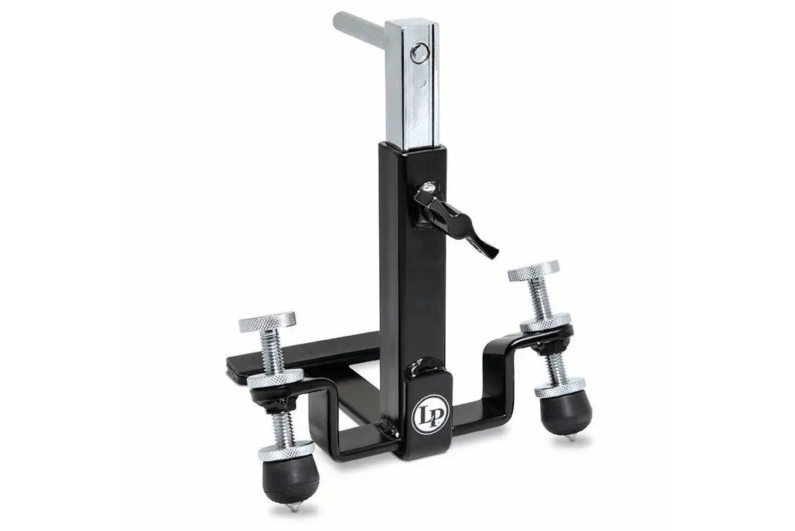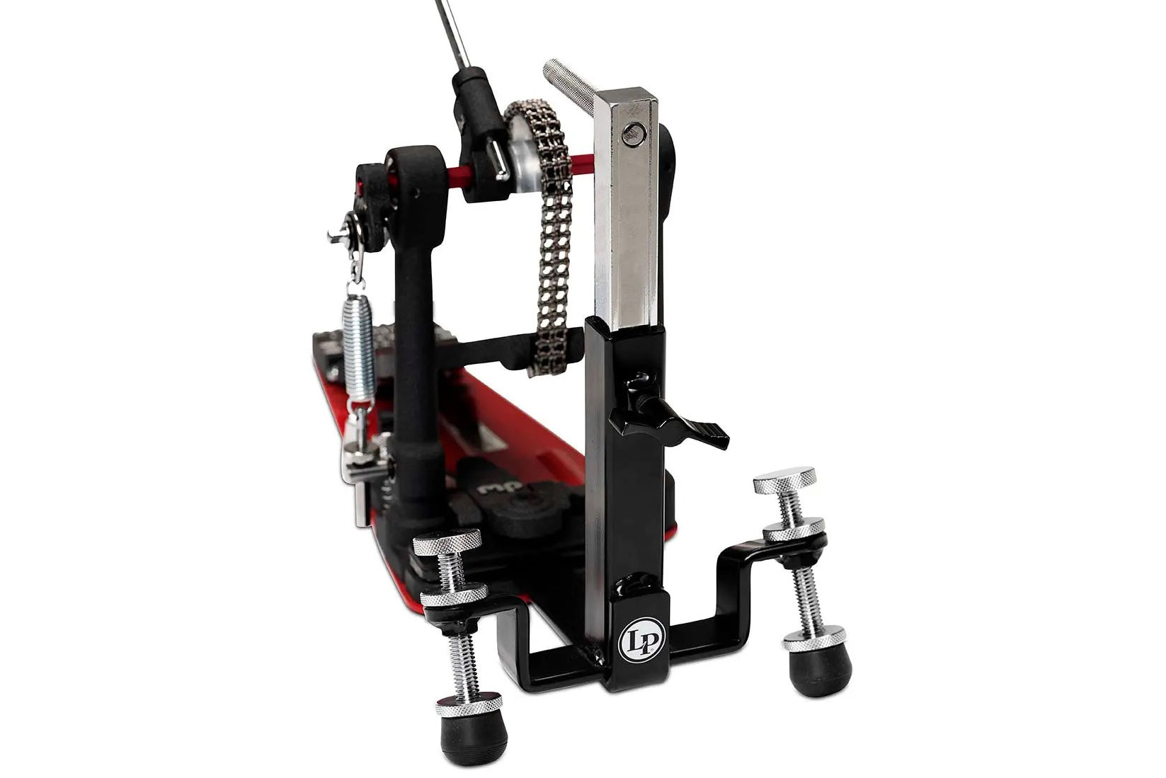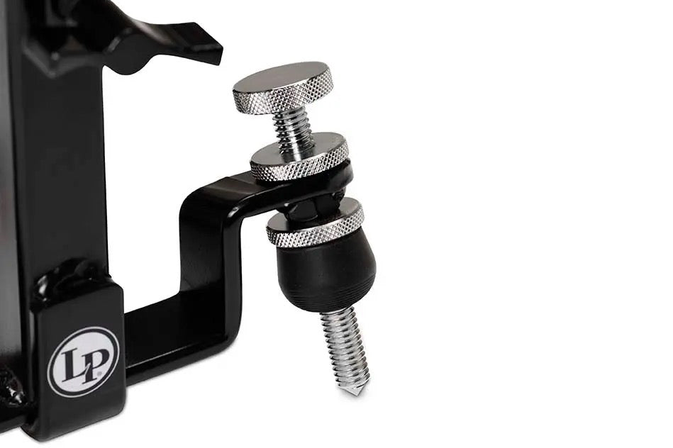Developed in collaboration with Percussionist Richie Gajate-Garcia, this newly re-designed bracket allows foot-playing of cowbells, tambourines or jam blocks. It attaches to any standard bass drum pedal and features a high-strength, one-piece frame with a sliding, height-adjustable post which is equipped with a 3/8' diameter mounting rod. The small footprint allows positioning in nearly any drum set or percussion set up.