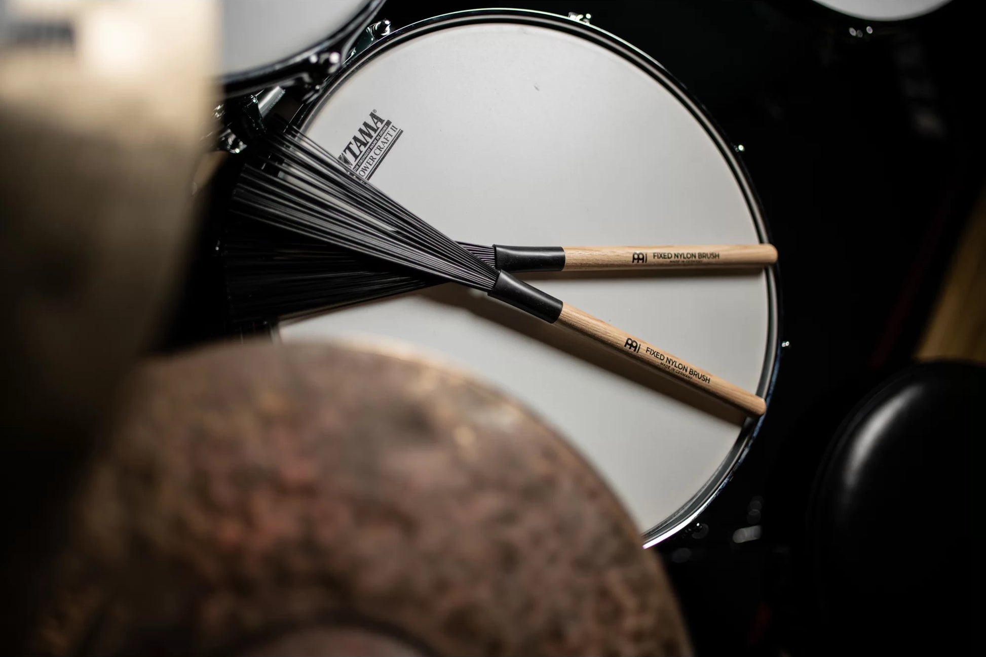 A great alternative to wire brushes, this fixed nylon brush provides both flexibility and durability with a warmer sound.