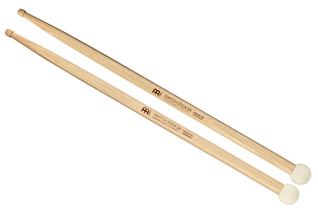The Switch Stick 5A features our popular Hybrid 5A sticks (made from American hickory) with a hard felt mallet added to the butt end. This is a great combination for players that need to make quick changes from sticks to mallets or mallets to sticks during a performance.