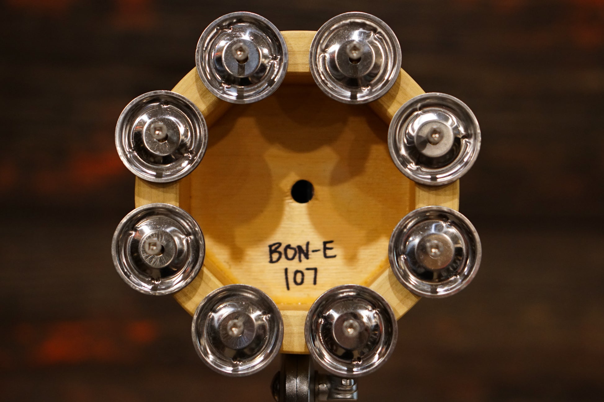 The Bon-E is a unique percussion instrument that can be mounted using a hi-hat clutch, on a cymbal sleeve (up to 6mm), or used in any other way your imagination can conjure! Stave-constructed poplar frame with eight double sets of Mid East Nickel Steel Jingles.
