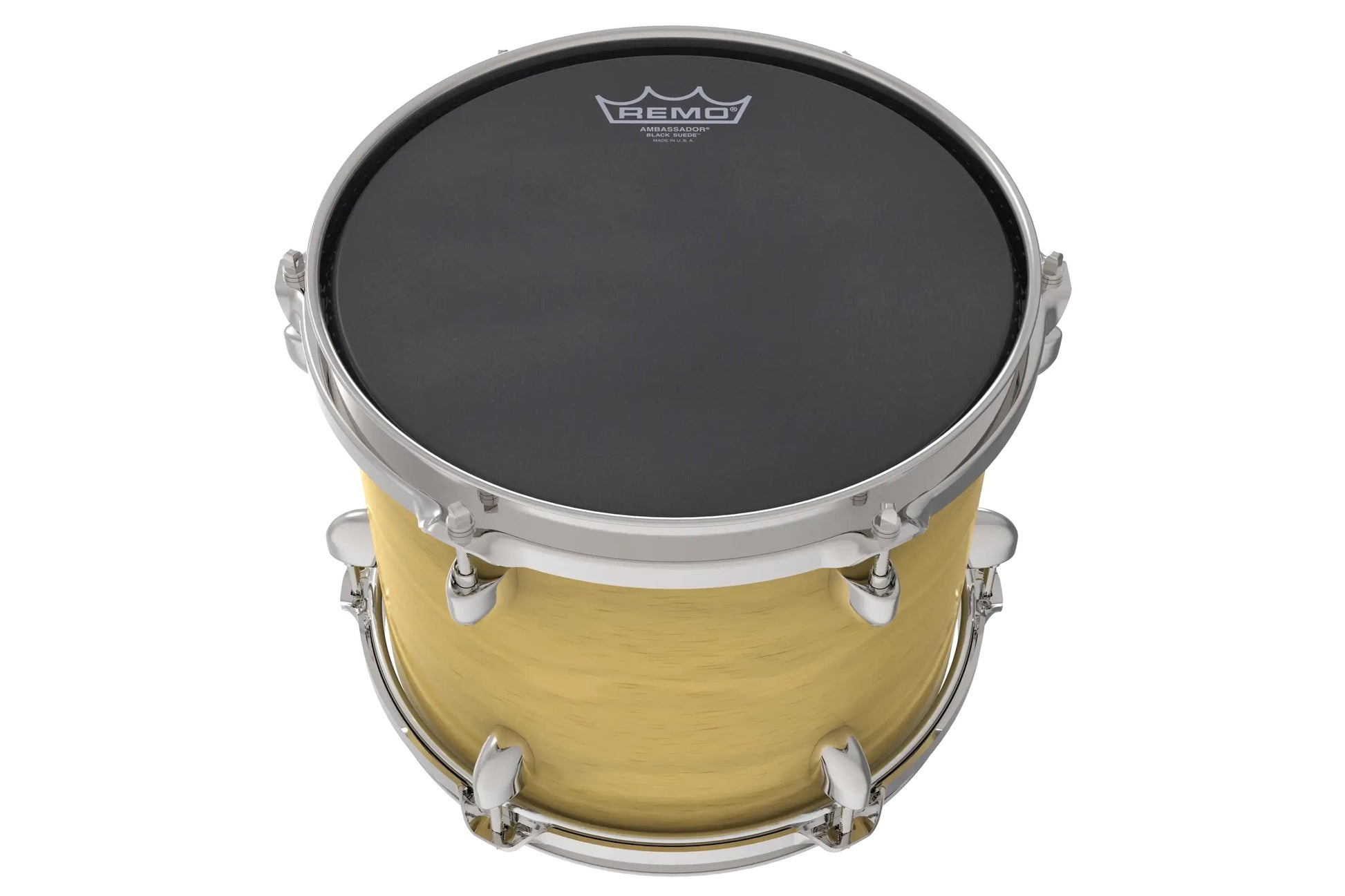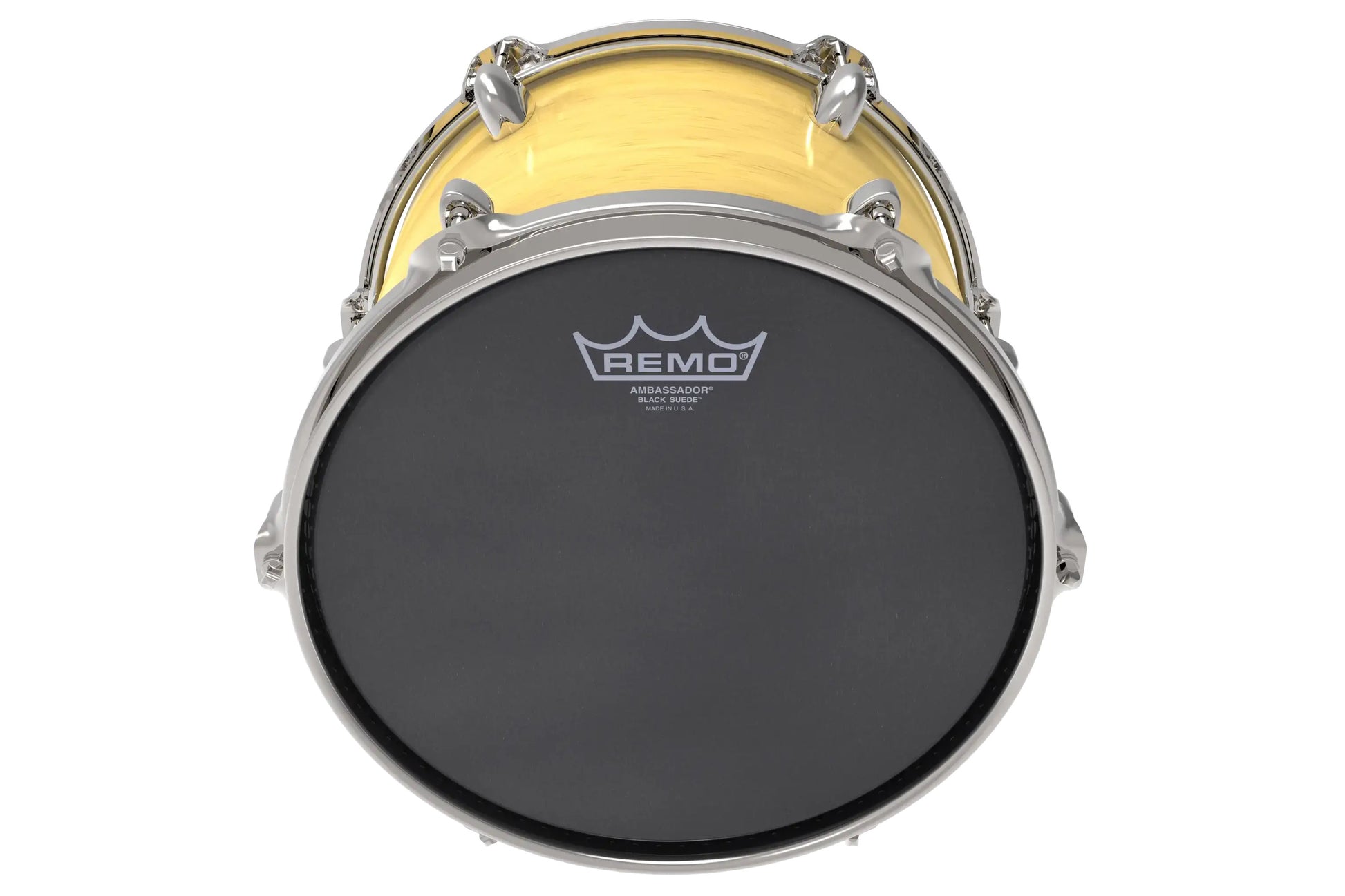 The Ambassador® Black Suede™ drumheads feature a lightly textured Ebony® surface that produces warm, open resonant tones for Toms and Snare drums. Constructed of 1-ply of 10-mil treated Ebony film, Ambassador Black Suede drumheads utilize Remo's proprietary texturing process that produces a lightly textured matte black non-reflective look.