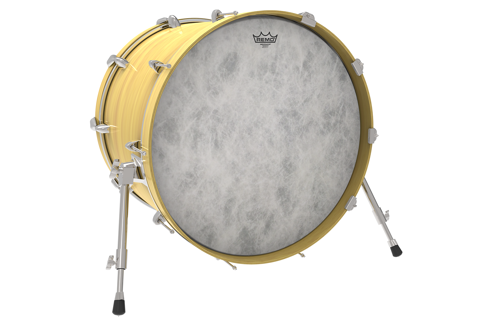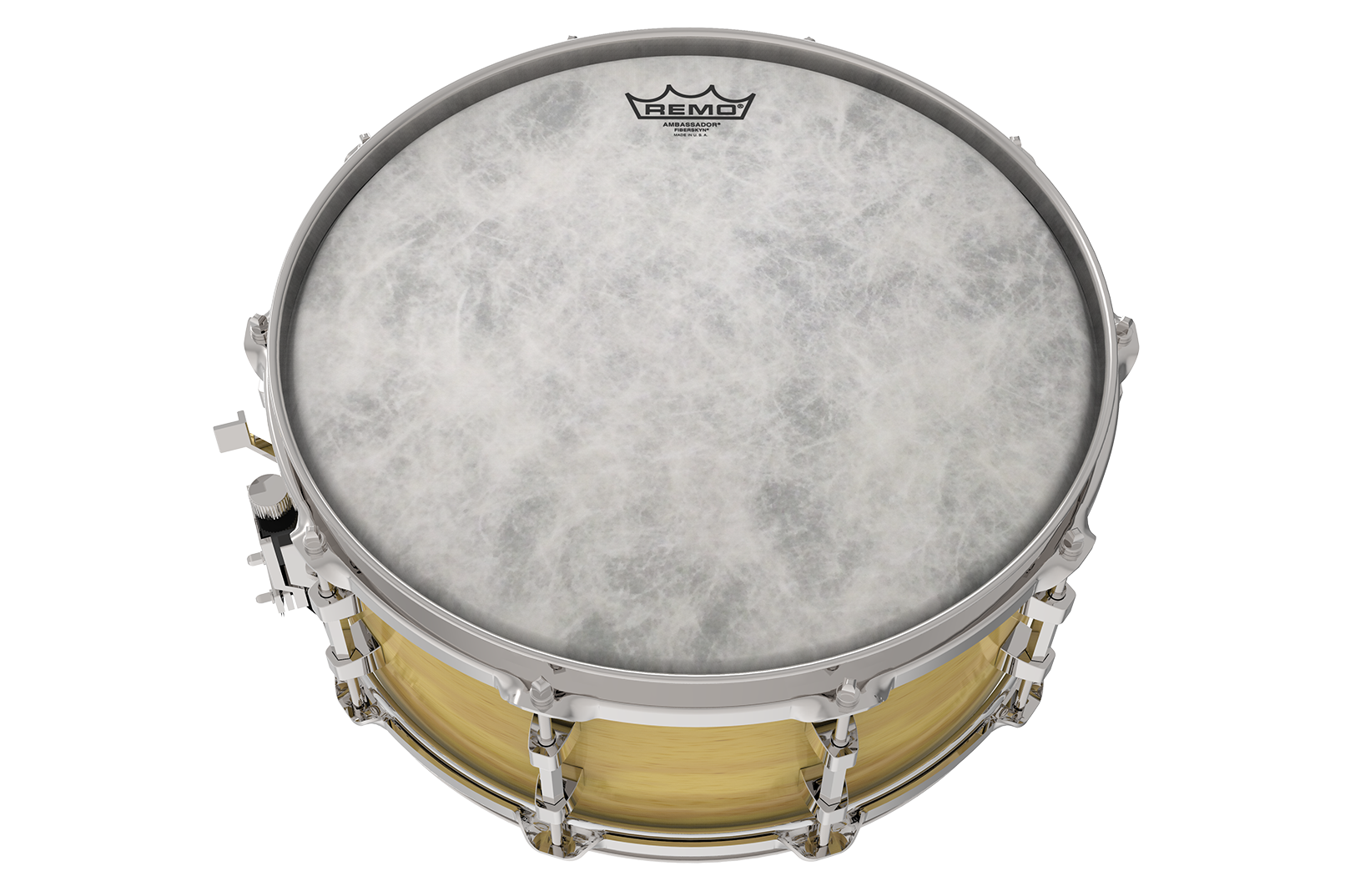 The Ambassador® Fiberskyn® drumheads feature warm, full-range tone with outstanding definition and enhanced mid and low-range resonance. Combining 1-ply of 10-mil film laminated to a 3-mil polyspun fiber, its sensitivity and soft articulation make the Ambassador® Fiberskyn® the most popular Concert Snare, Concert Bass, Concert Tom and traditional Field drum drumhead in the world. Ideal for playing with sticks, brushes and mallets in all Concert and Marching Percussion applications, and highly durable for outdoor use.