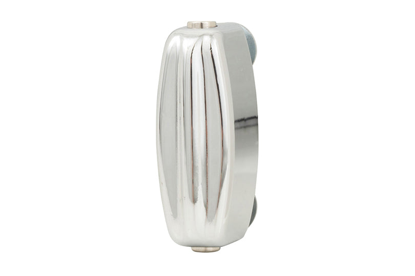 This lug was used on Rogers drums between 1959 and 1964. The original iconic design was made of drawn brass with chrome plating. Known as the Bread & Butter lug,“B&B” or the “Tab Lug”, which refers to two threaded tabs that mounted the lug to the drum. Although a celebrated visual feature of the Rogers drums, these original lugs were prone to breaking over time, due to extended stress on the tabs- even with normal use.