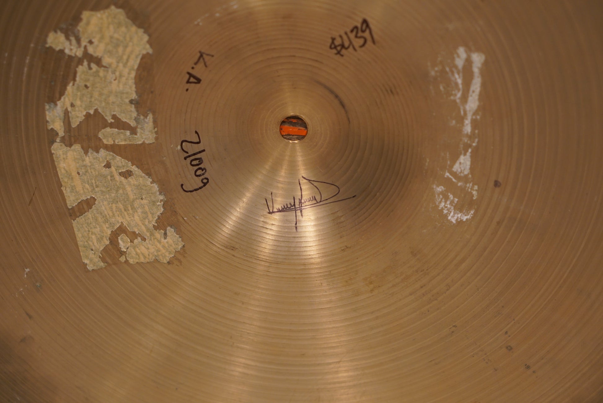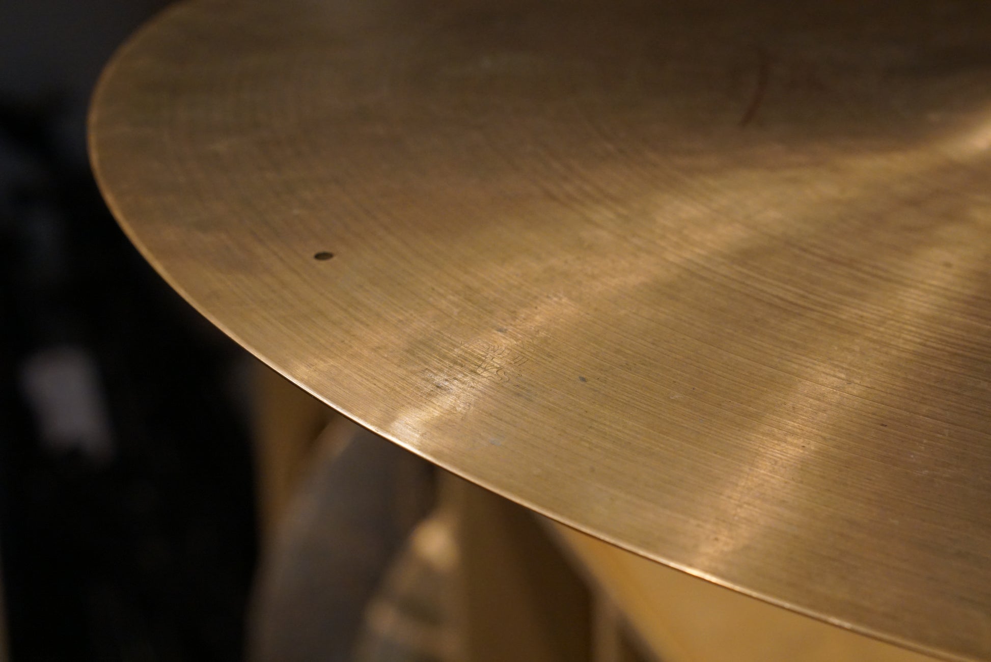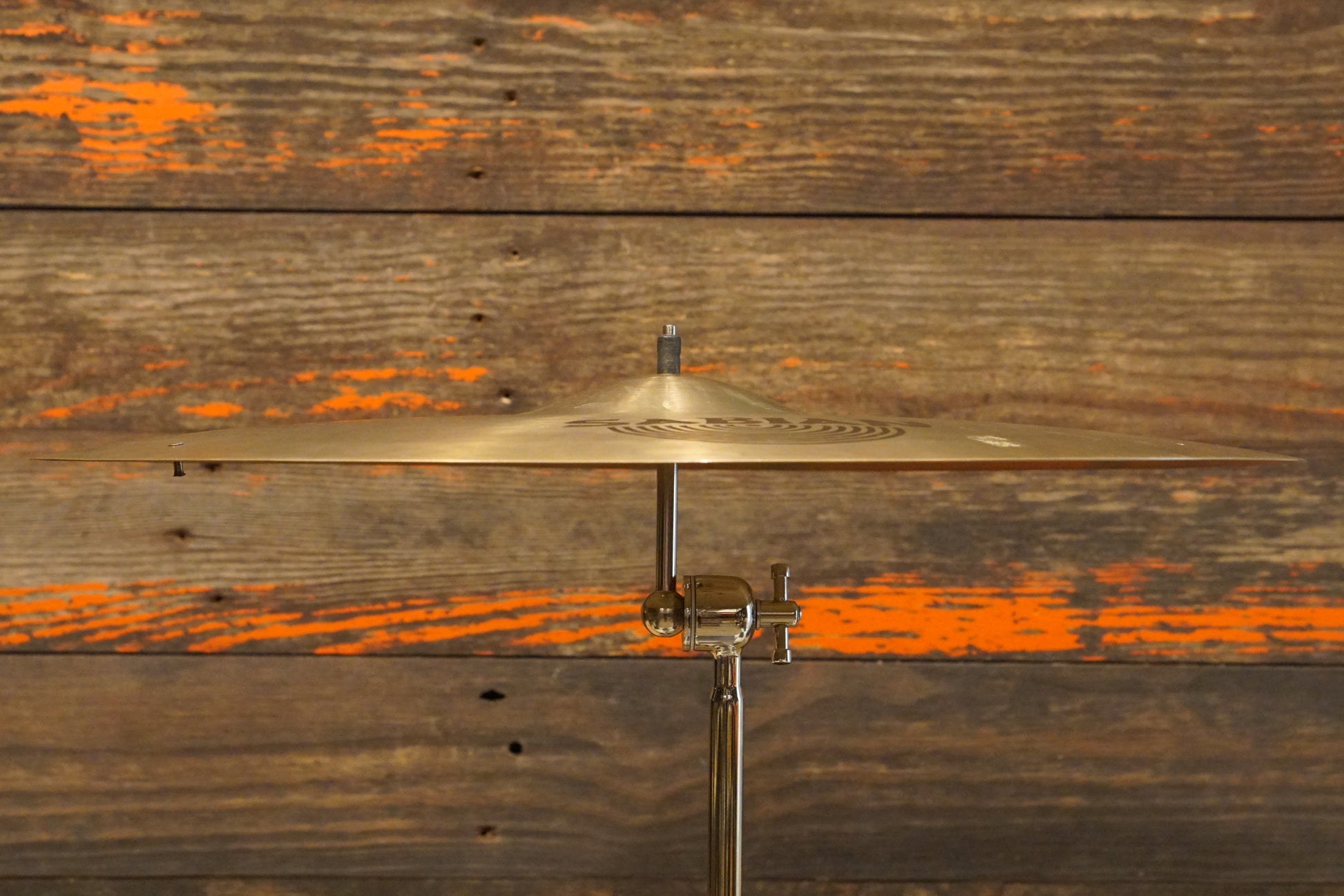 A very cool 22" Sabian prototype thin crash, weighing a slight 2100 grams.In great shape with medium patina, three rivet holes, and some tape residue. A punchy, quick crash for its size, with a dark, smooth wash. Stick attack is quite blended except at low volume.