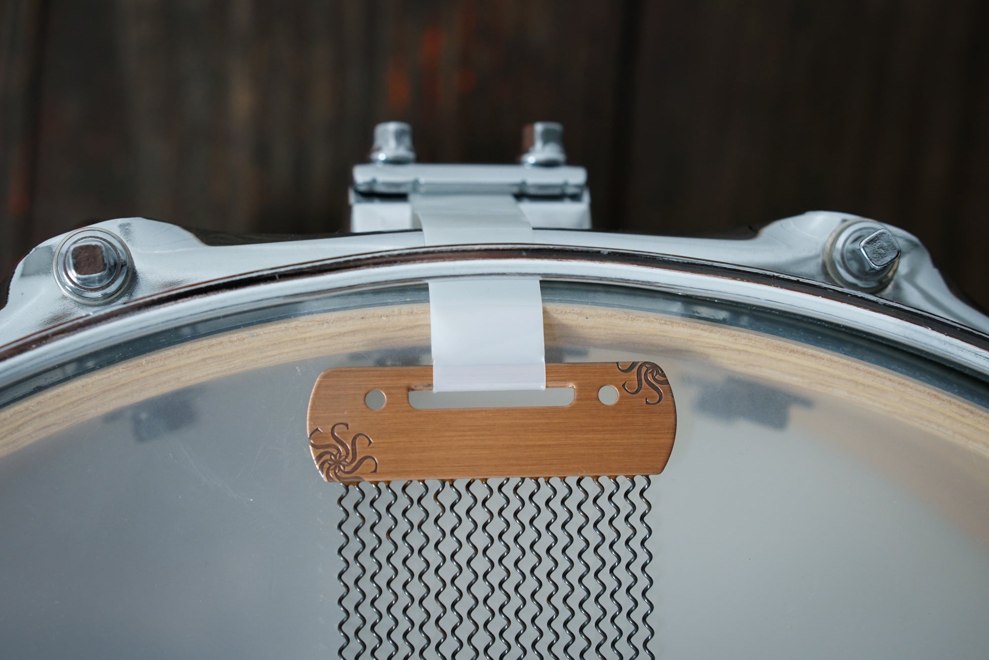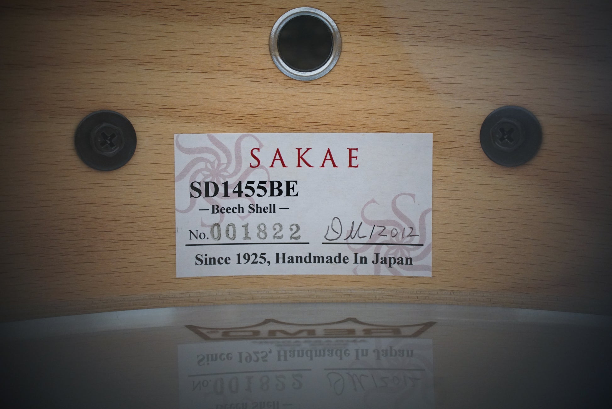 A Sakae 5.5x14" Beech snare handmade in Japan, and dating to 2012. In great condition, with 9-ply shell, ten Union lugs, 20-strand snare wires, and 2.3mm triple-flanged hoops. A beautiful drum that sounds fantastic.