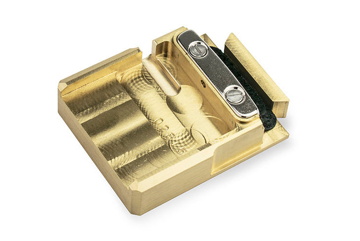Since the 1st designs of 2011, there have been a few improvements to the magnet and magnet enclosure. Recessed screws now anchor the magnet as well as a raised brass lip to prevent the magnet from chipping. Also we included what we call the "absorber" above the magnet to prevent jitter at certain tuning. This also costs more to manufacture but we feel in the long run it's worth it.