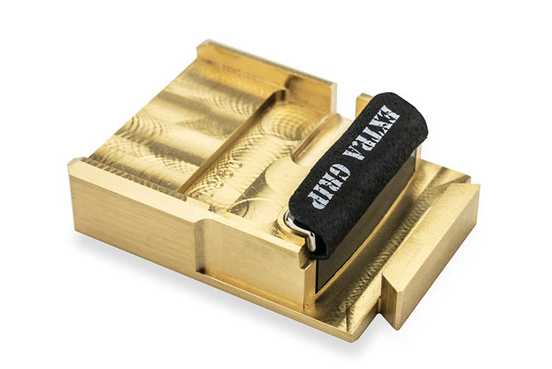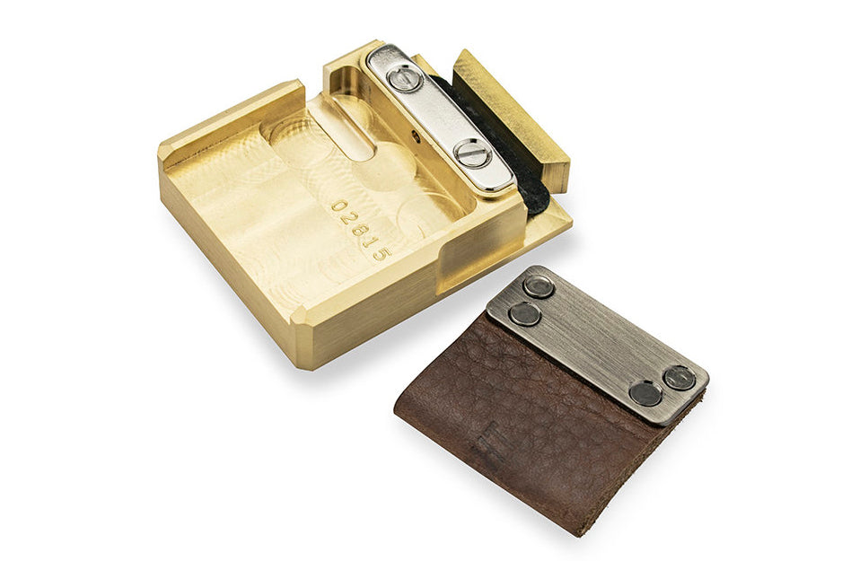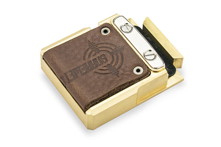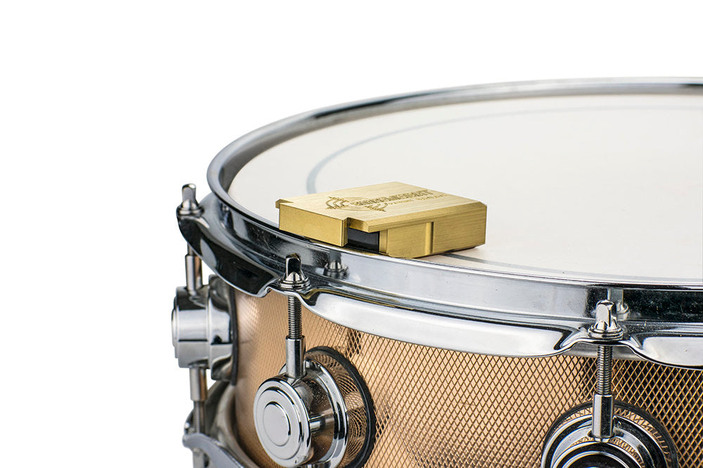 Snareweight #5 is the fifth generation, built for metal triple flange hoops (die cast hoops need a pro lock). It's made to last of a weighted solid 3/4lbs. chunk of CNC'd brass. The weight, friction of leather insert and magnet, all work together to create what we call "expressive dampening"—giving color options to your playing all the way through the dynamic range.