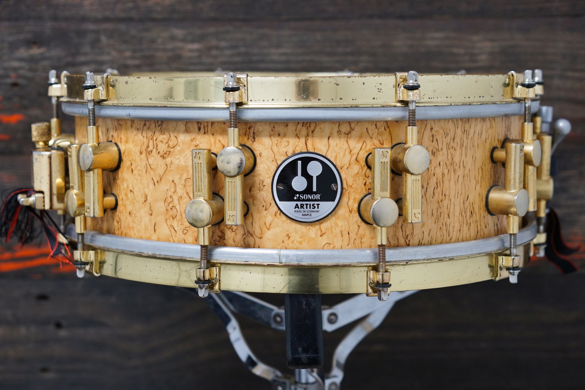 "With its thin Vintage Maple Shell, this Artist Snare Drum offers excellent resonance and a clear, transparent sound. The classic Scandinavian Birch finish and the gold-plated fittings give it a very high end look. Its warm and rich sound make this snare drum quite versatile & naturally suited to a wide variety of musical styles."