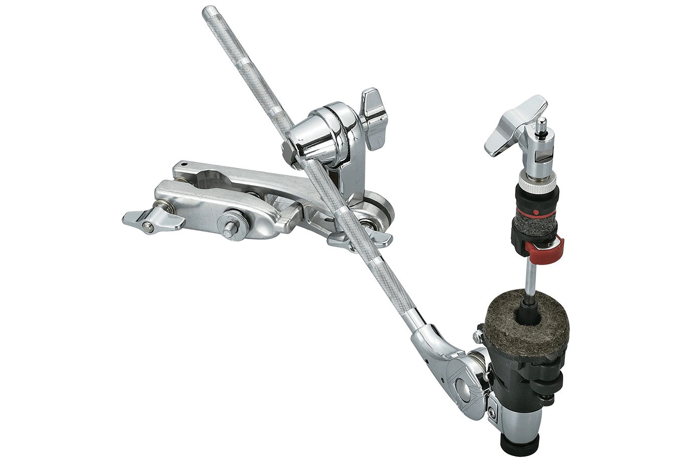 This closed hi-hat attachment is ideal for double bass playing. The tension adjustment knob makes it possible to finely adjust the degree of opening of the hi-hat cymbals. In addition, the angle of the bottom cymbal is also adjustable, which allows for subtle adjustment of the sound of a closed or half-open hi-hat by changing how air escapes with each hit.
