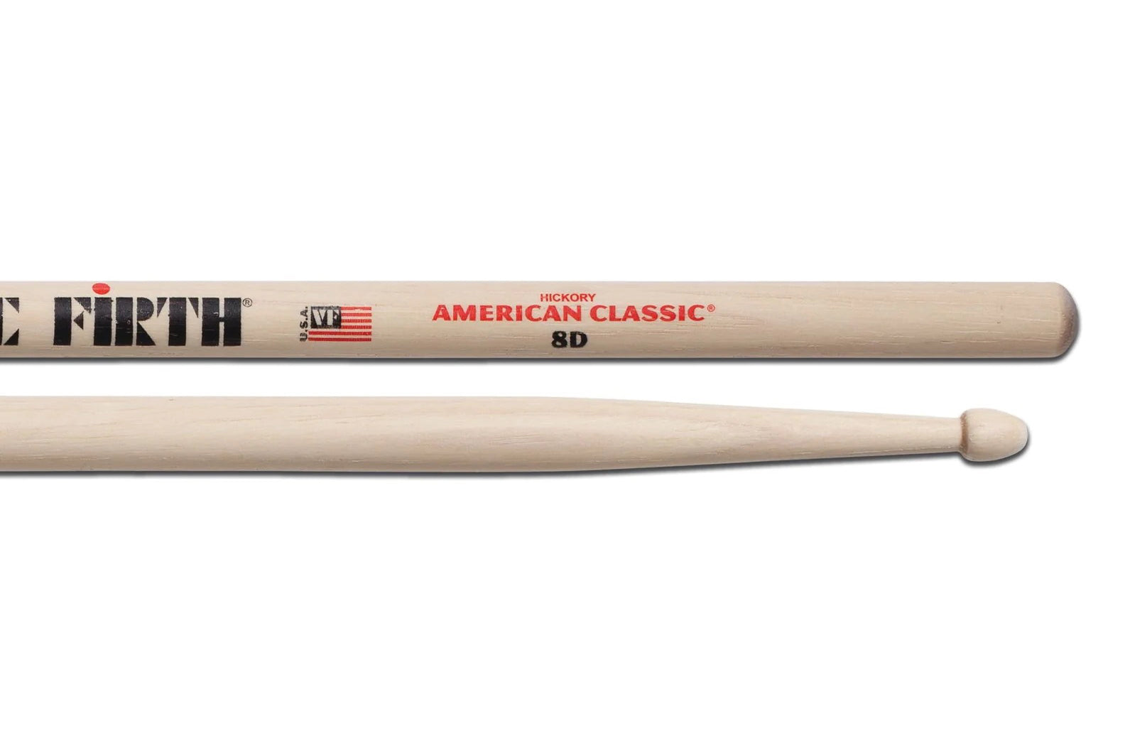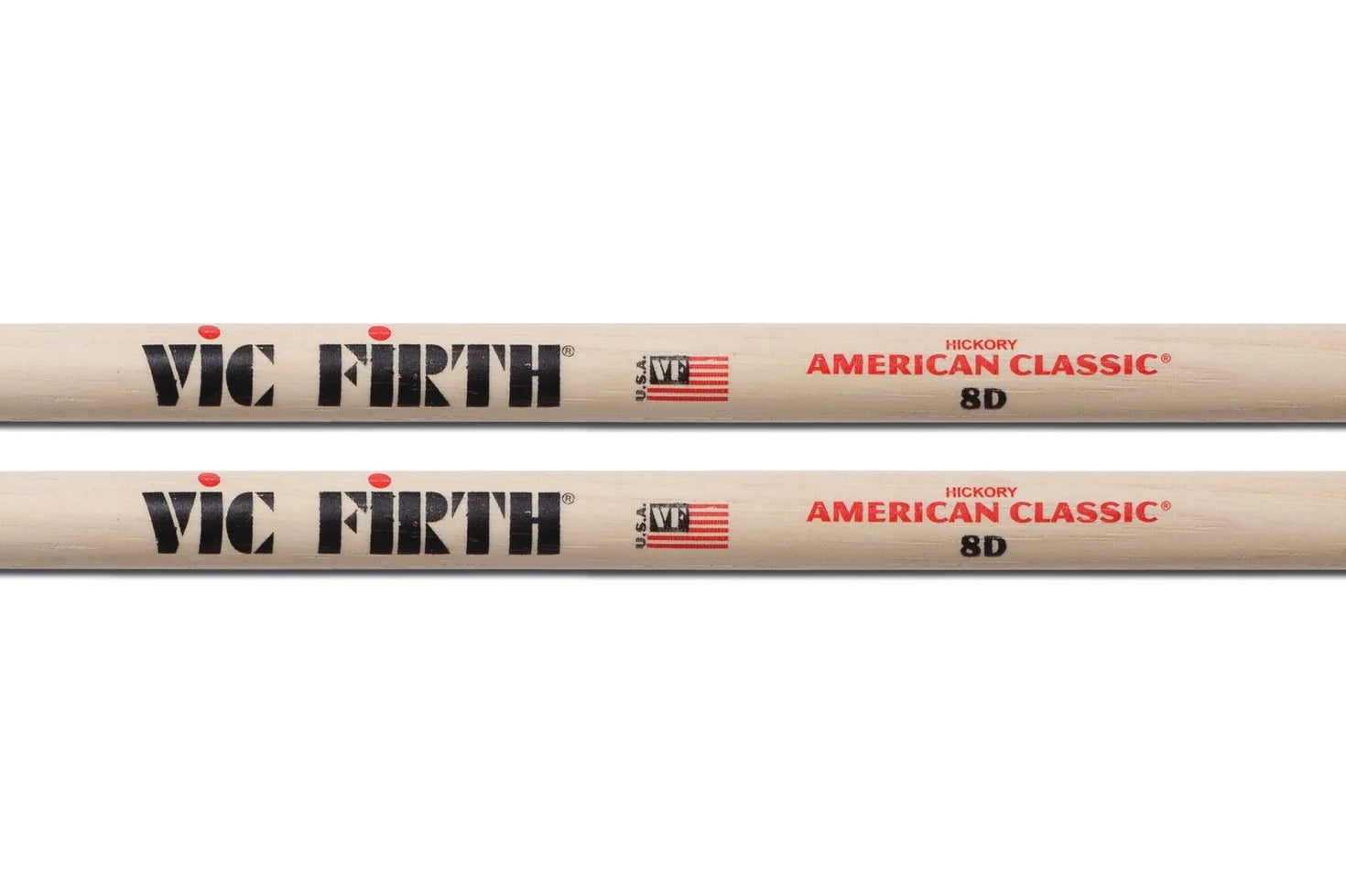 The American Classic line combines tradition and Vic Firth style. With bold designs, the Classics are turned from select hickory — a dense wood with little flex for a more pronounced sound. Hickory is also capable of withstanding a great deal of shock, making it highly durable. The tips are deeply back-cut for intensified cymbal response.