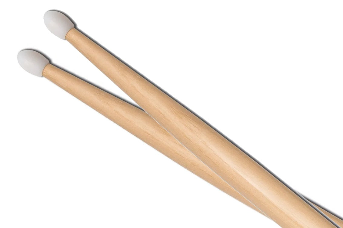 An 8D shaft with a medium taper for great balance. Unique nylon tip marries elements of a barrel and an oval, for bright and well-defined cymbal sounds.