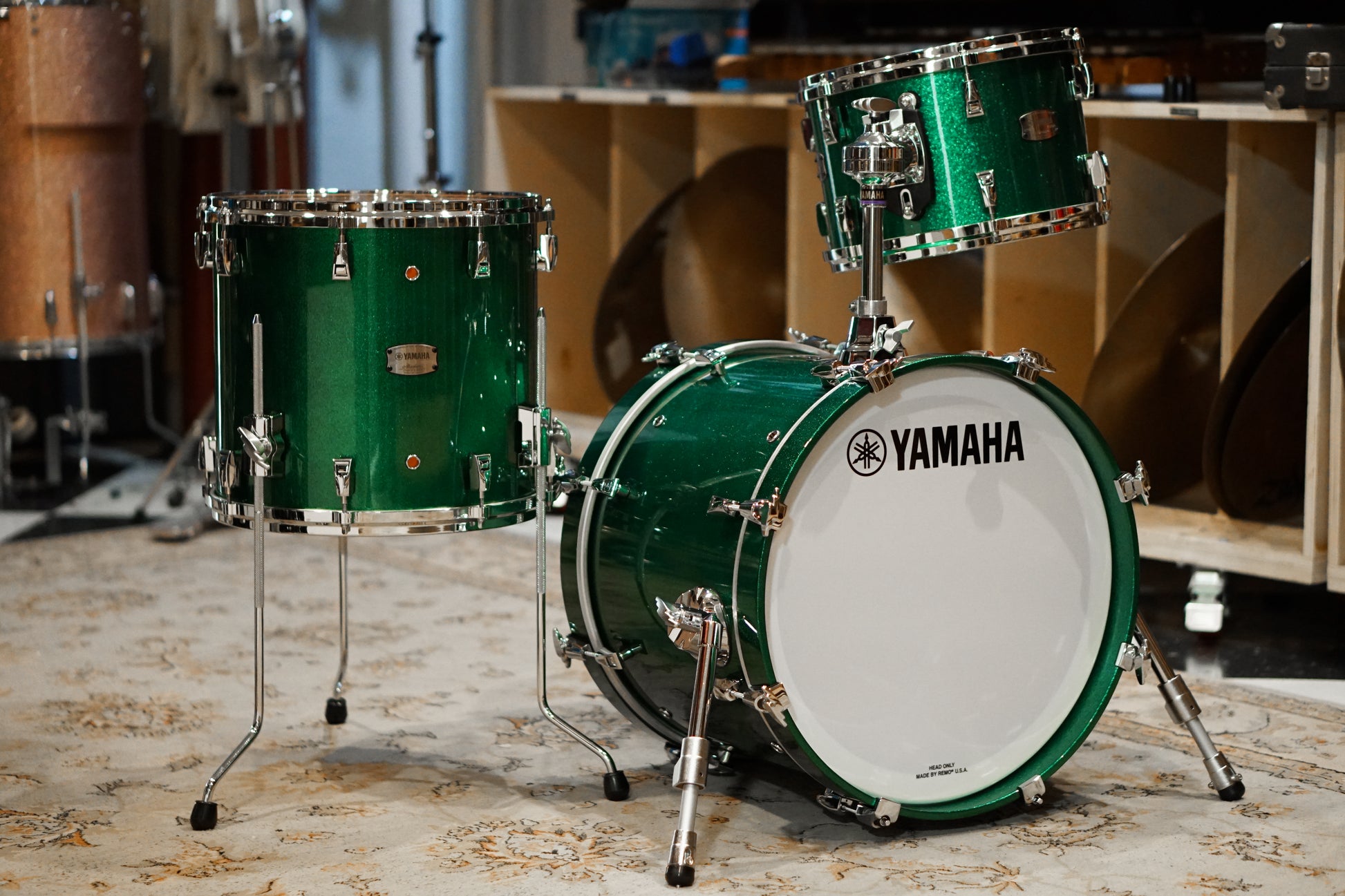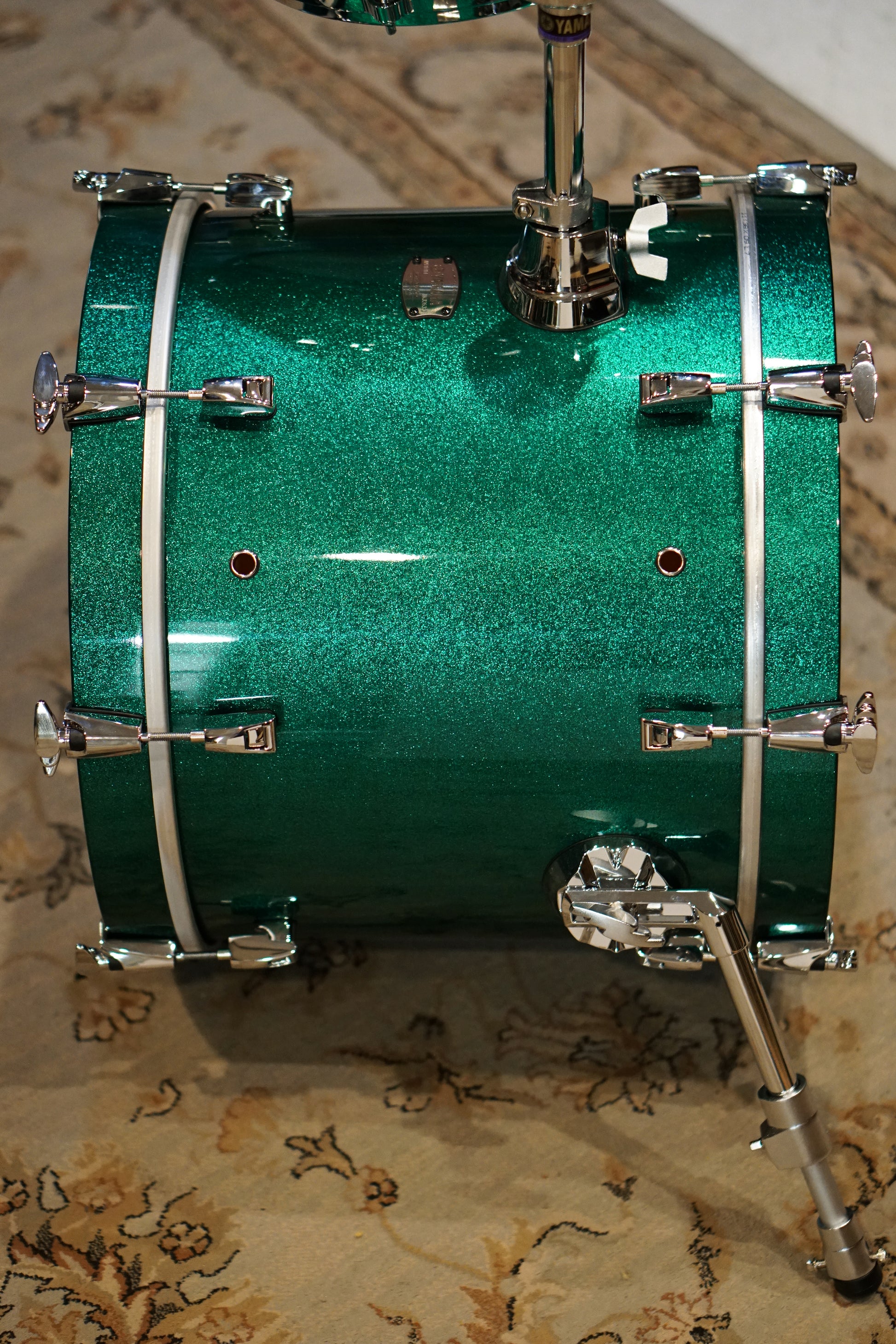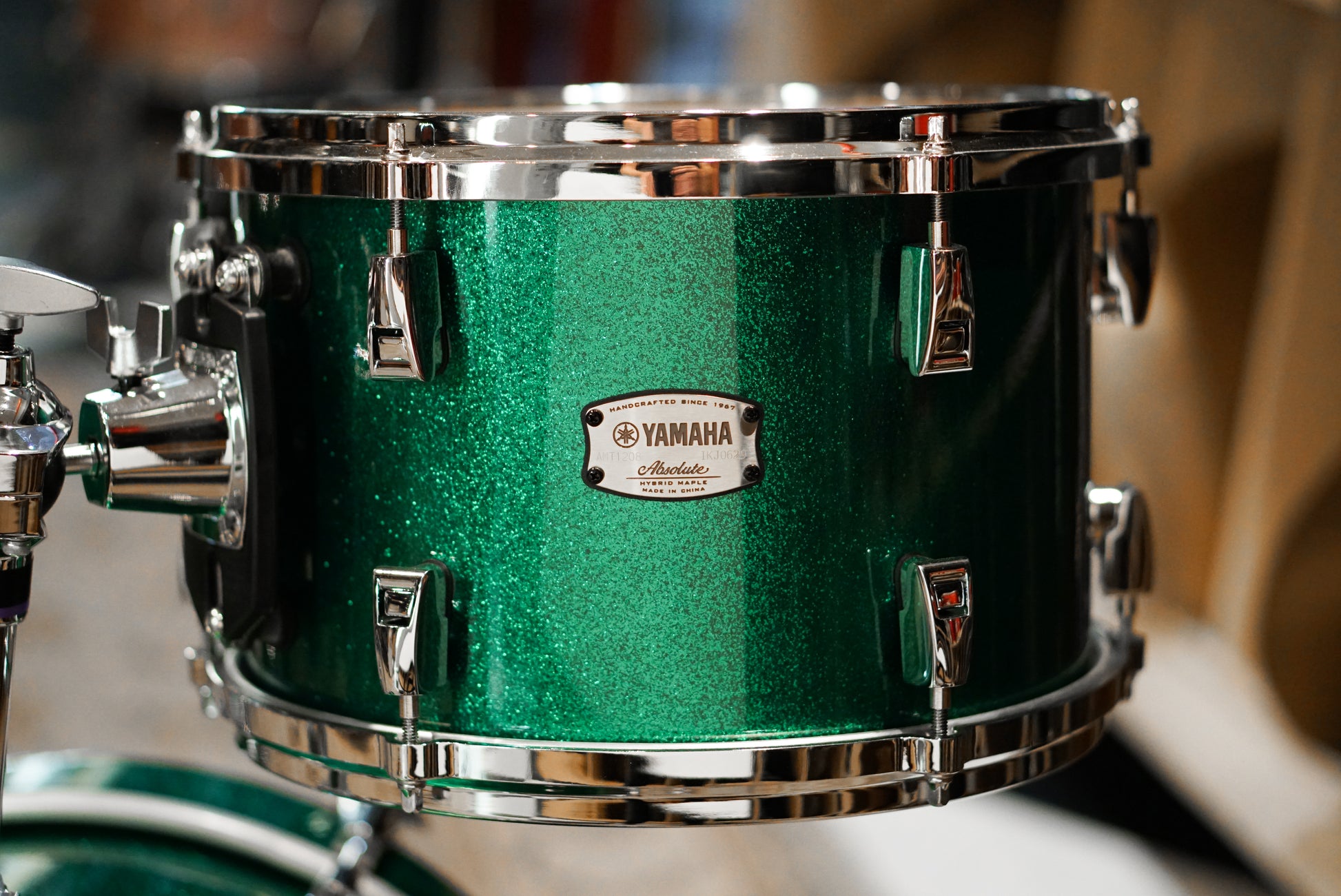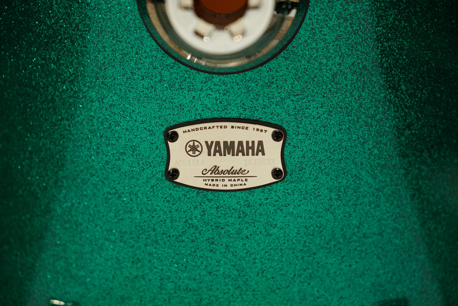A brand new Yamaha 12/14/18" Absolute Hybrid Maple Bop kit in Jade Green Sparkle finish.