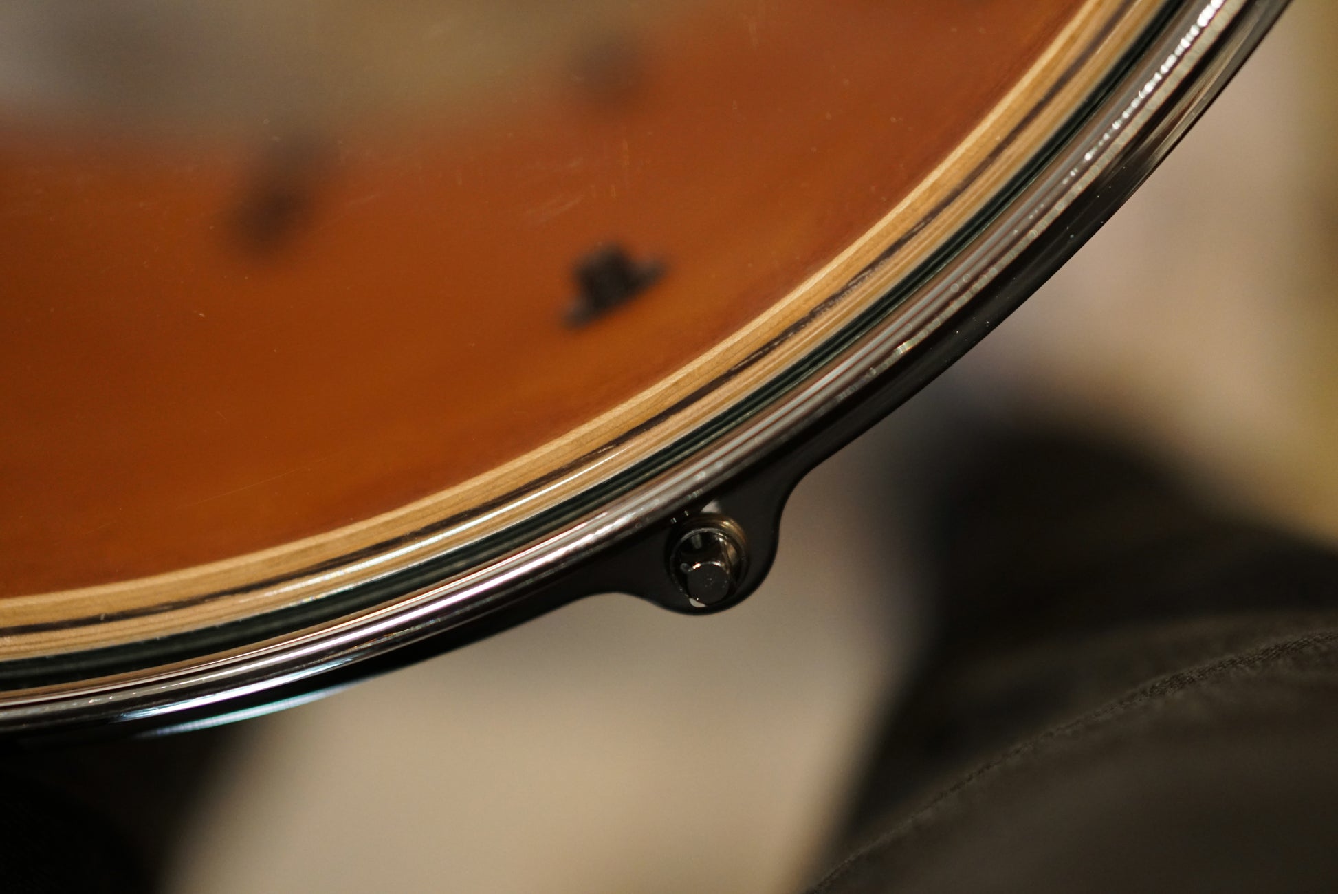 The bearing edge angle on the bass drum differs from the angle on tom and snare shells. A 45-degree /R1.5 edge is used on the snare and toms to achieve a balanced tone, while the 30-degree/R1.5 edge on the bass drum creates a low-end tone, for a deeper, more powerful sound.