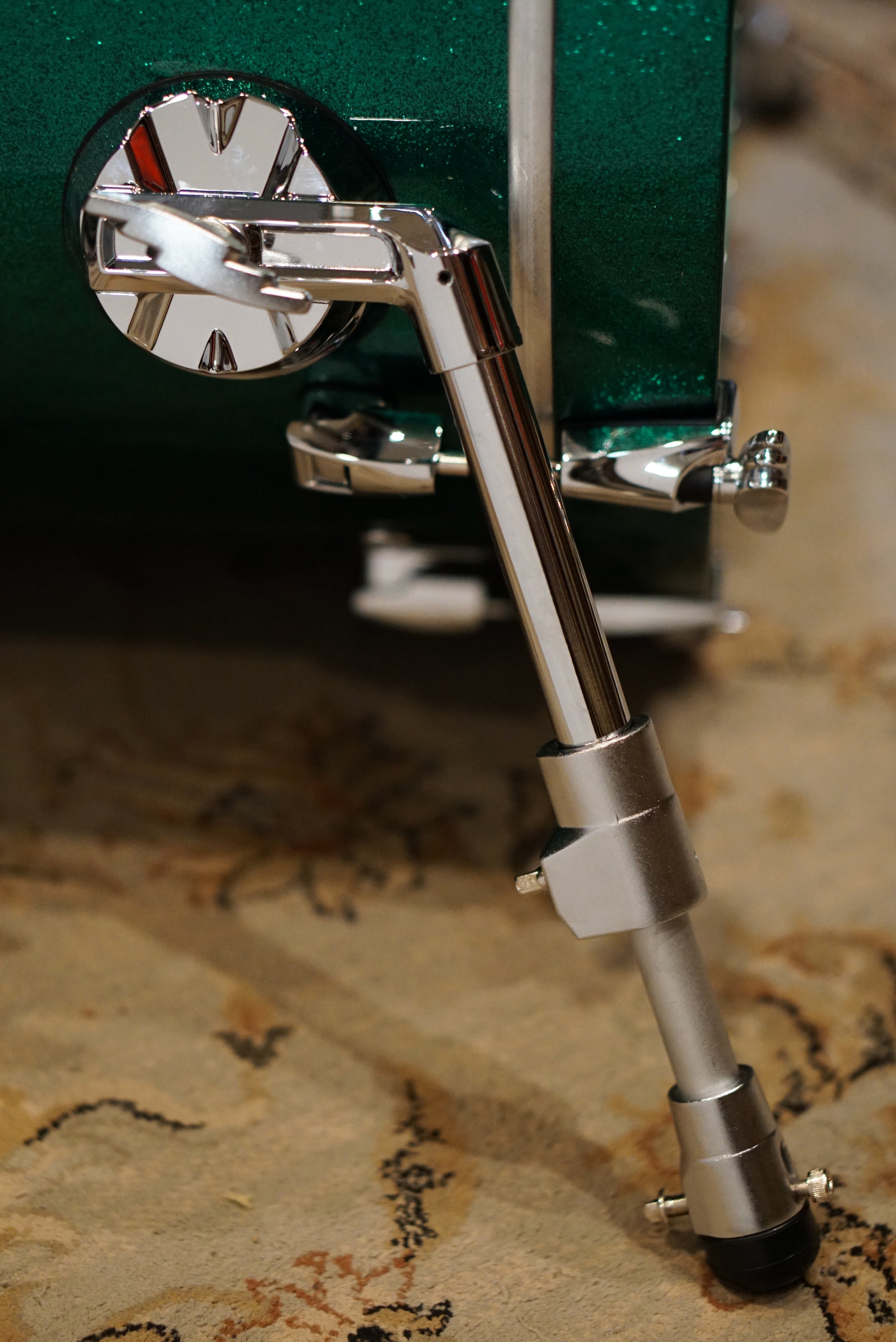 The tom holder's small, lightweight footprint allows the bass drum shell to vibrate more freely.