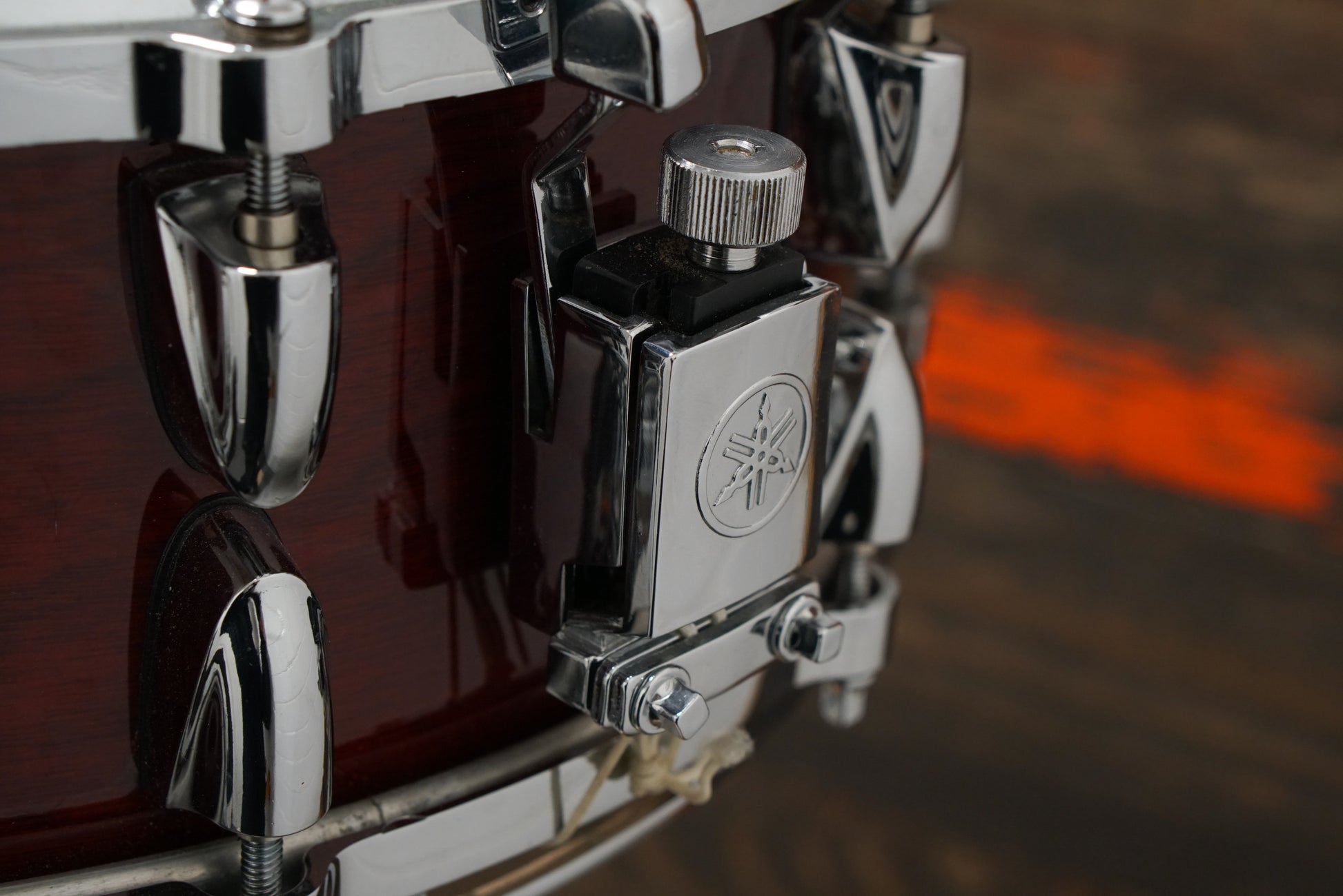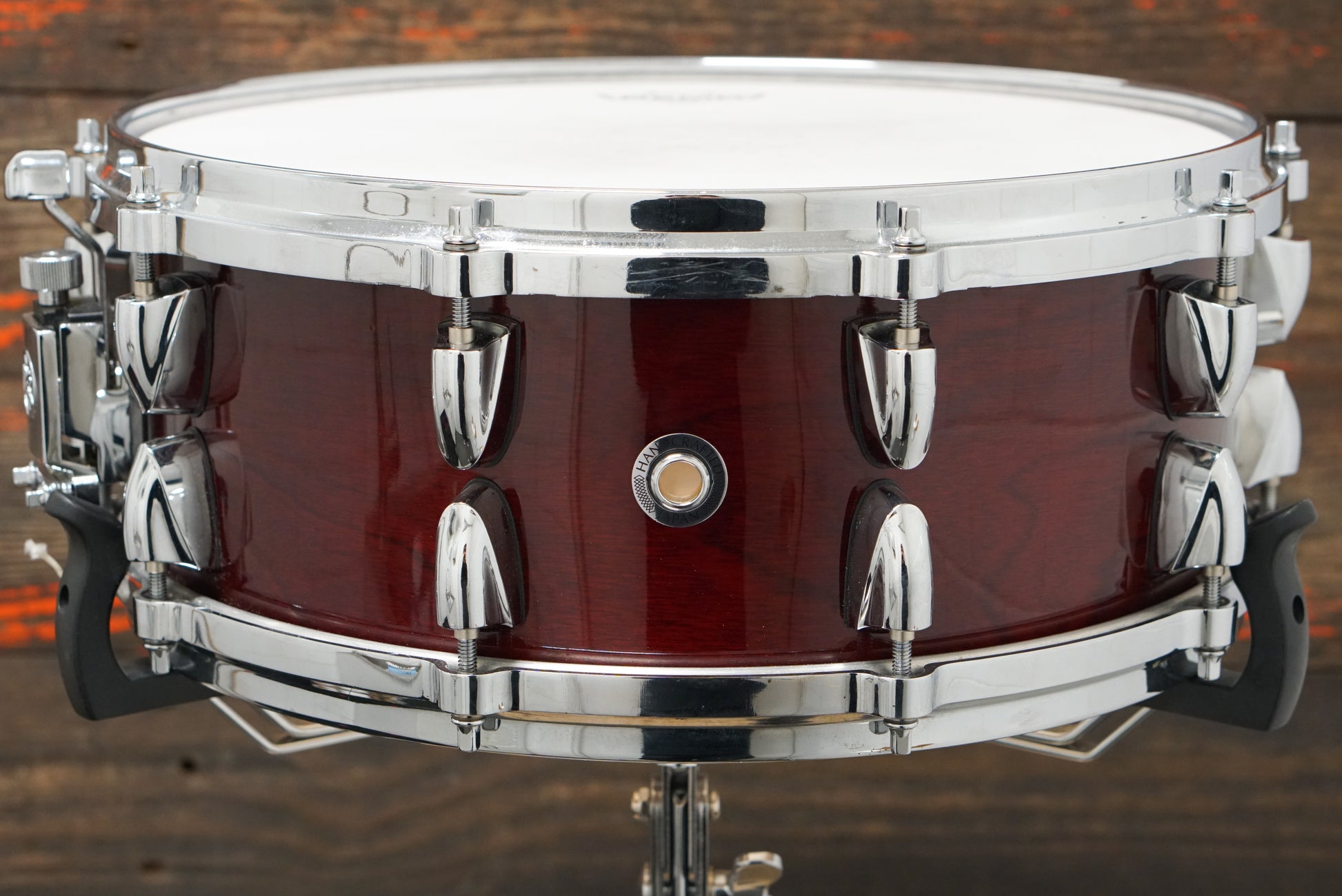 A used Yamaha 5.5x14" Birch Custom Absolute snare drum in Cherry Wood dating to 2002. Relatively clean, with some fingerprinting and light surface blemishes. Made in Japan with Ten lugs, Pure Sound 20-strand snare wires, and all original hardware. A classic icon from a great Yamaha era.