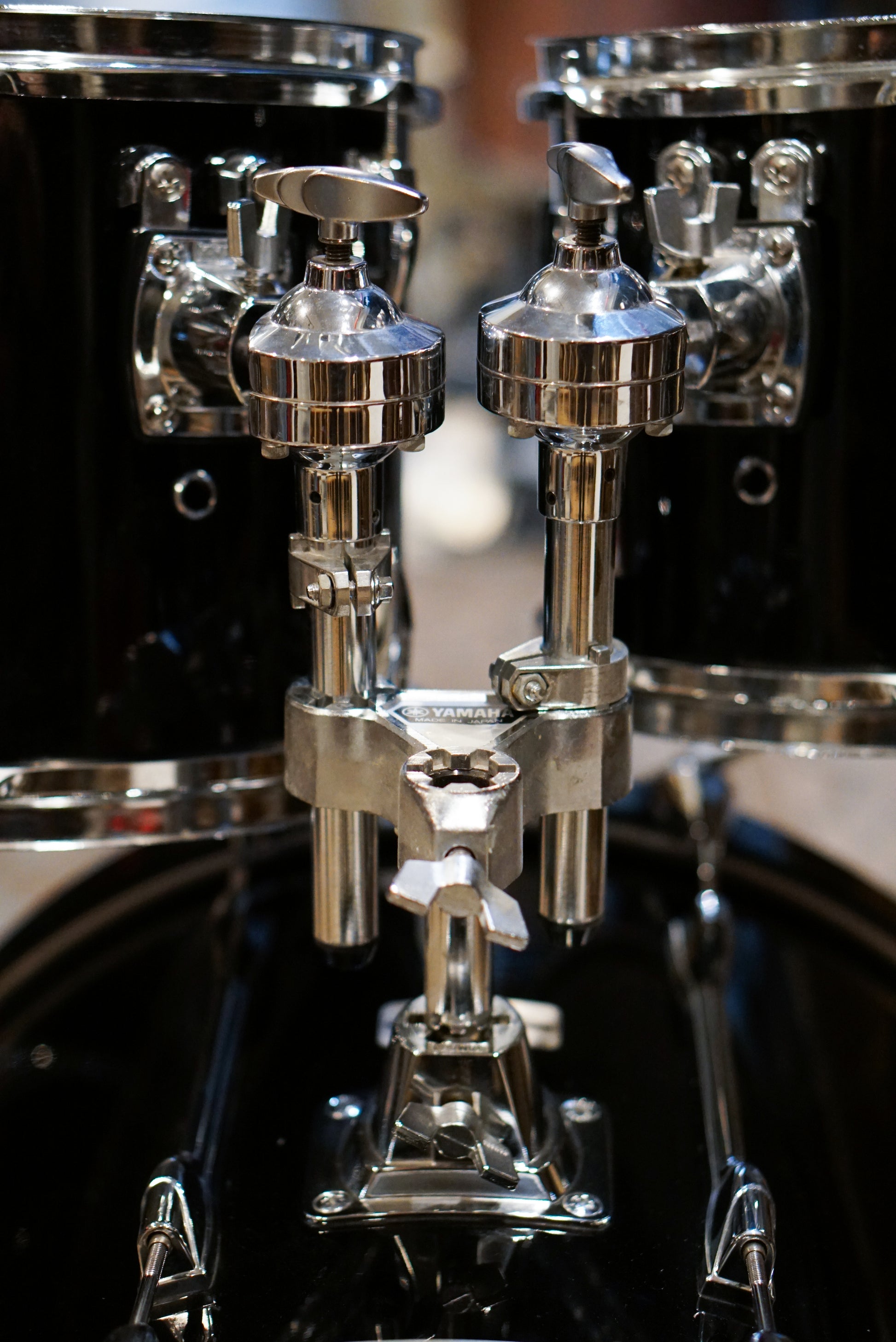 A beautiful Yamaha Power Recording Custom kit in solid black finish. Consists of 9x10", 10x12", 12x14", and 14x16" hanging toms with a 16x22" kick drum.