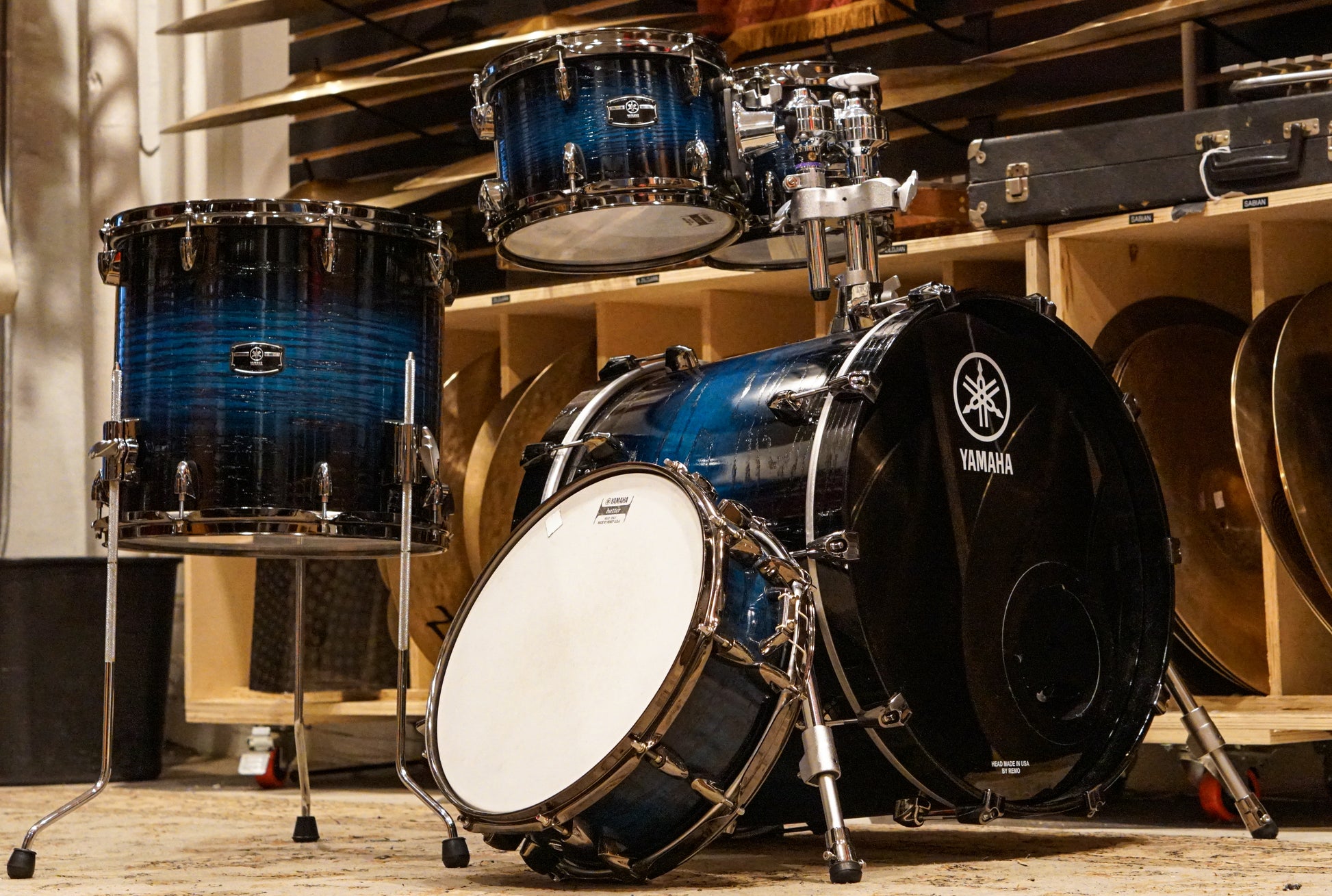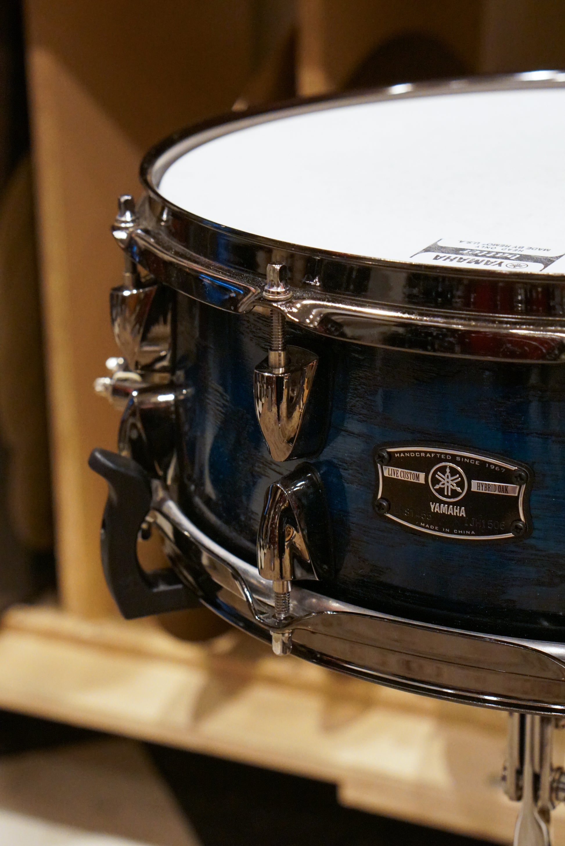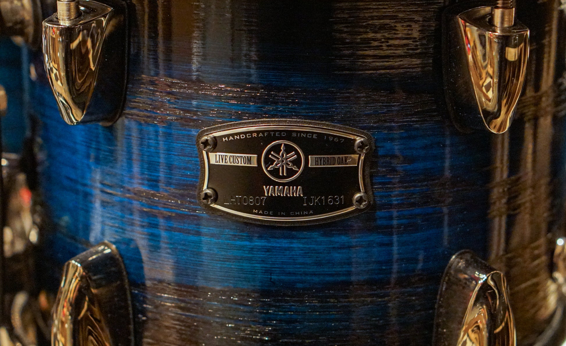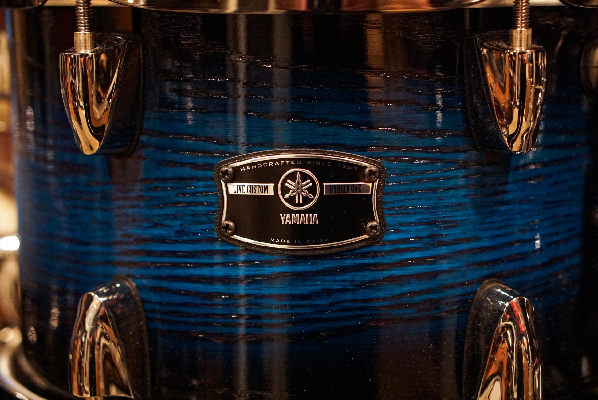 A Yamaha Live Custom Hybrid Oak kit in gorgeous Uzu Ice Sunburst finish. 7x8" and 7x10" mounted toms (double tom holder included), 13x14" floor tom, 16x20" kick drum, and 5.5x14" snare. Pre-owned and very well cared for.