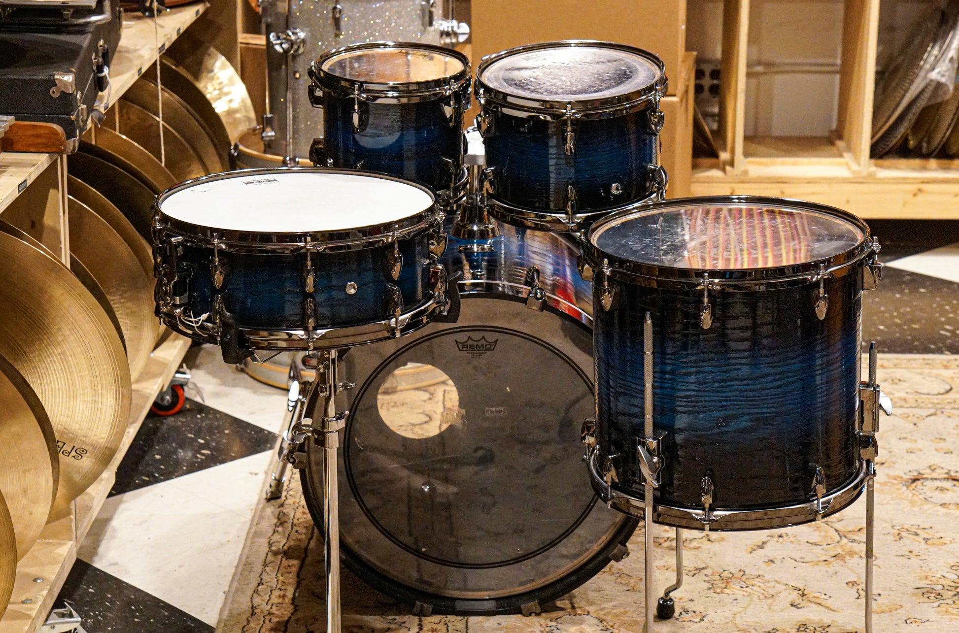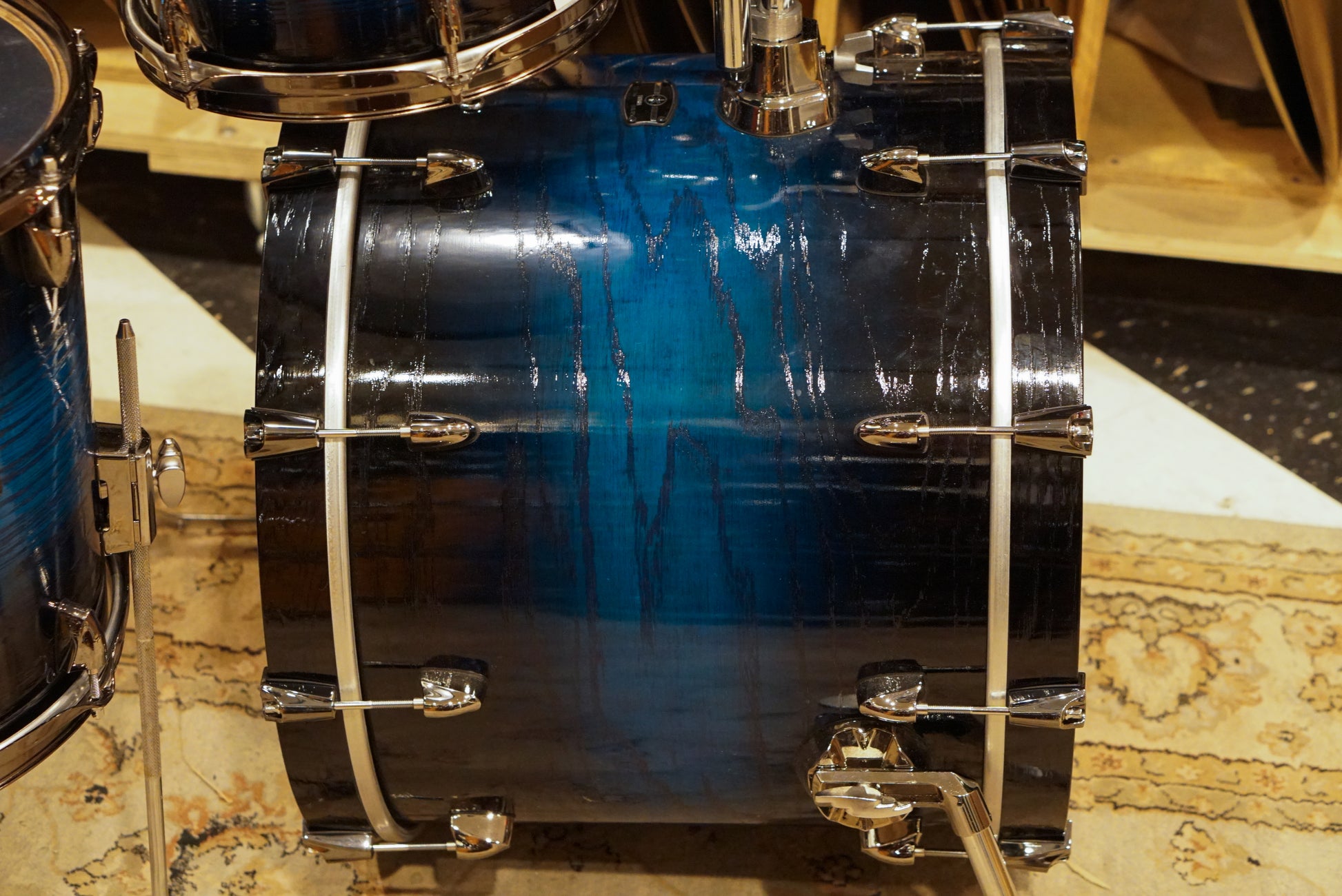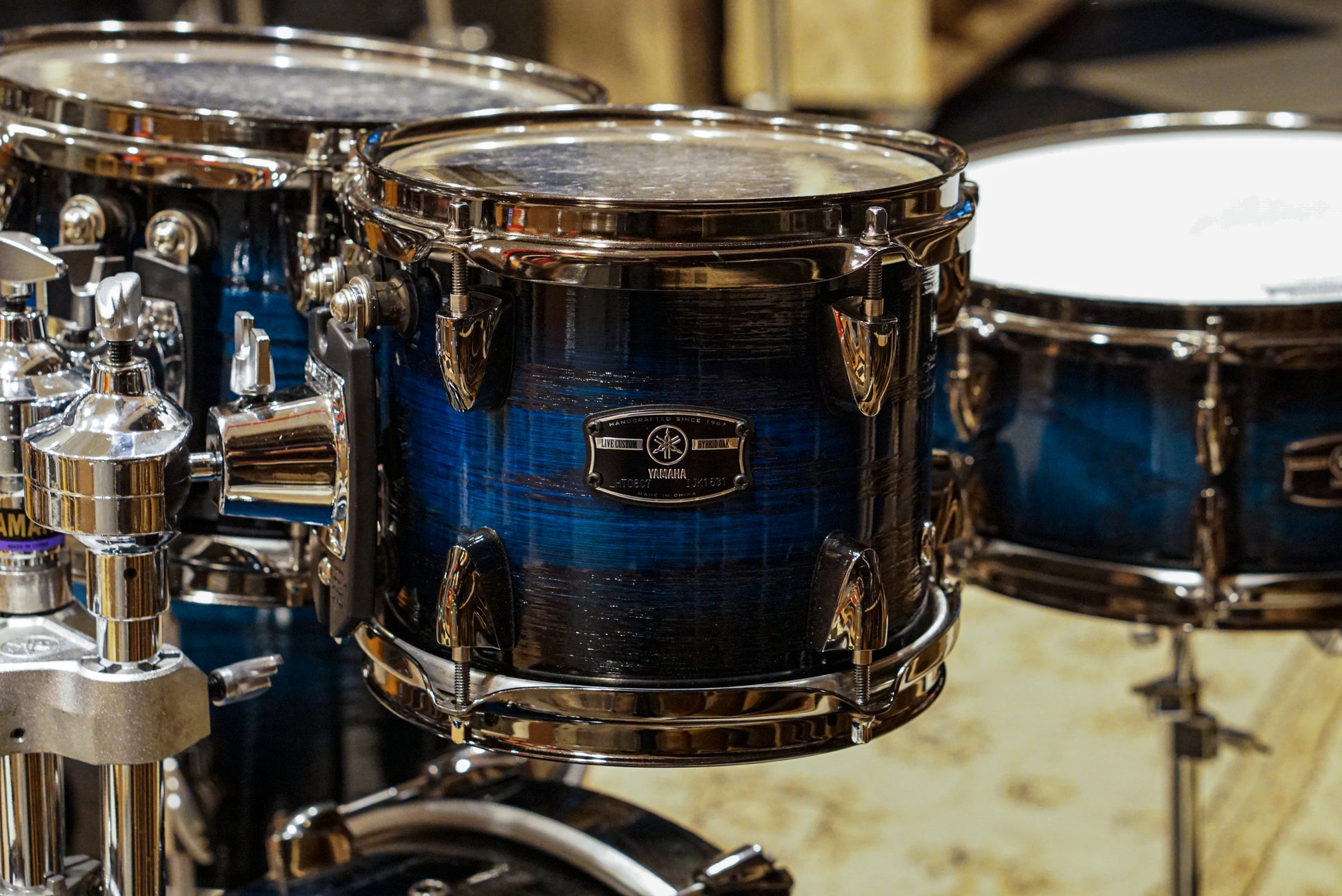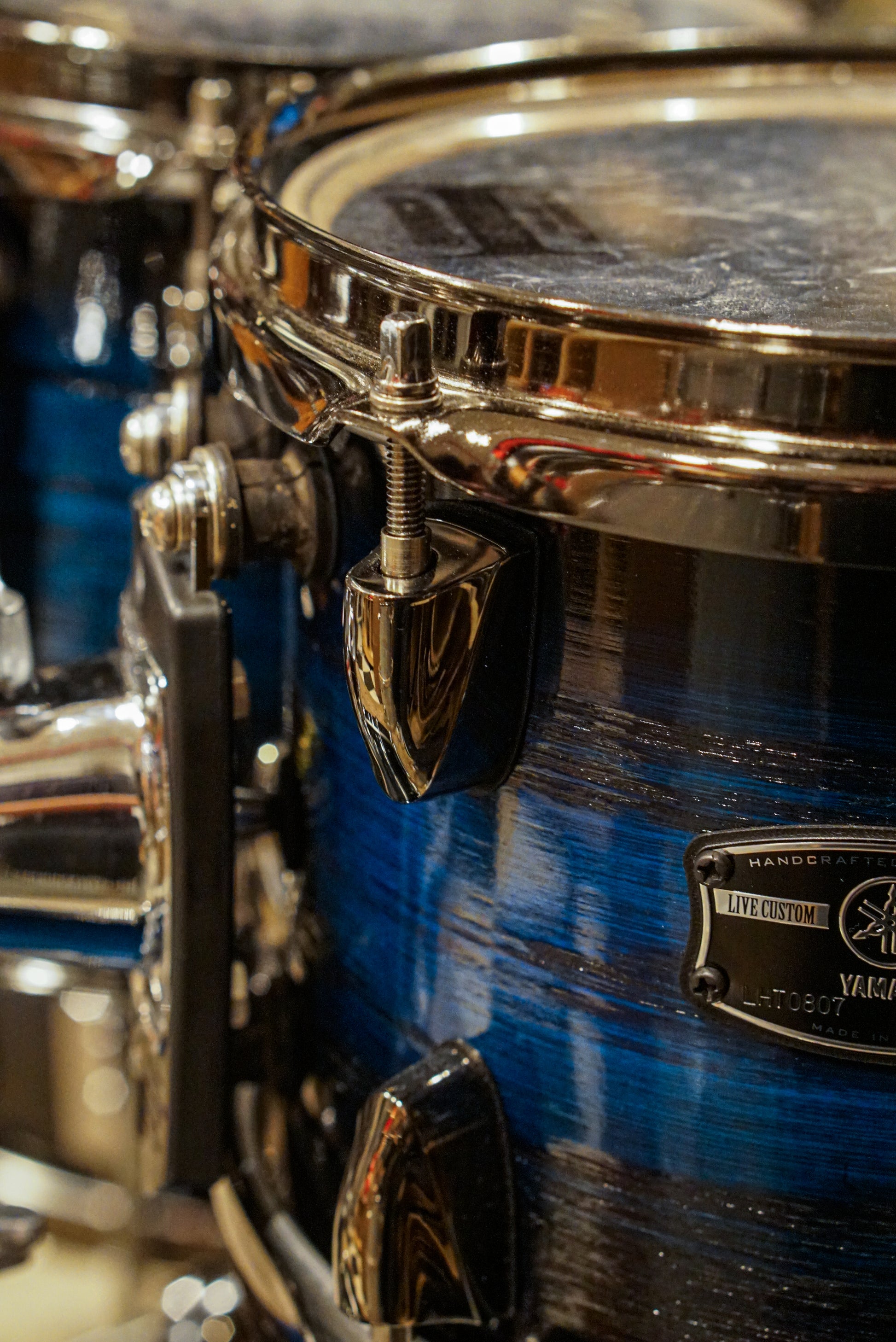 A Yamaha Live Custom Hybrid Oak kit in gorgeous Uzu Ice Sunburst finish. 7x8" and 7x10" mounted toms (double tom holder included), 13x14" floor tom, 16x20" kick drum, and 5.5x14" snare. Pre-owned and very well cared for.