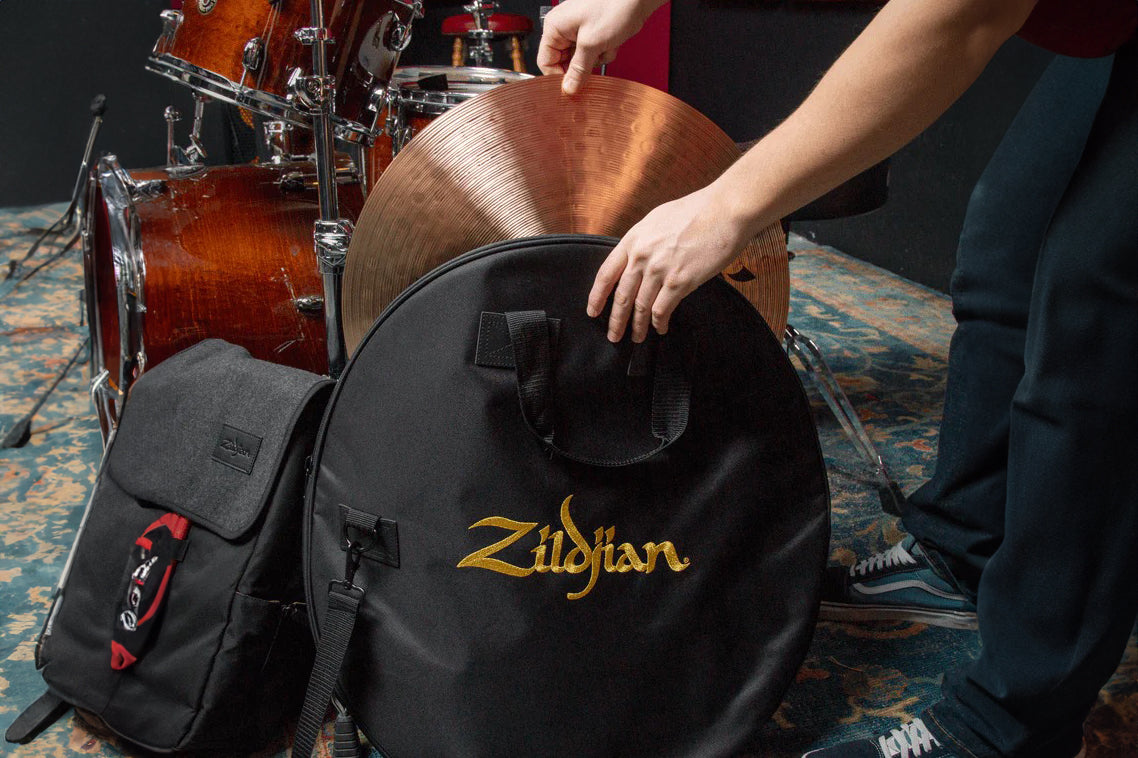 - Black canvas bag with gold embroidered Zildjian logo on front