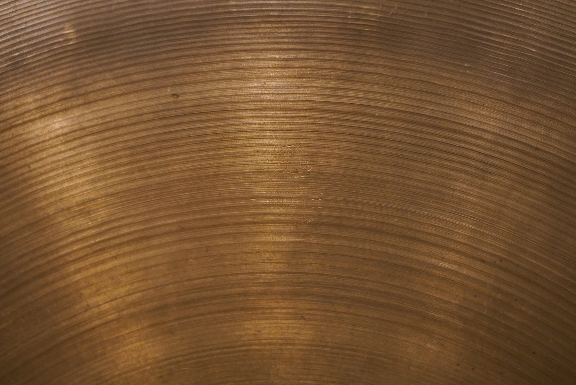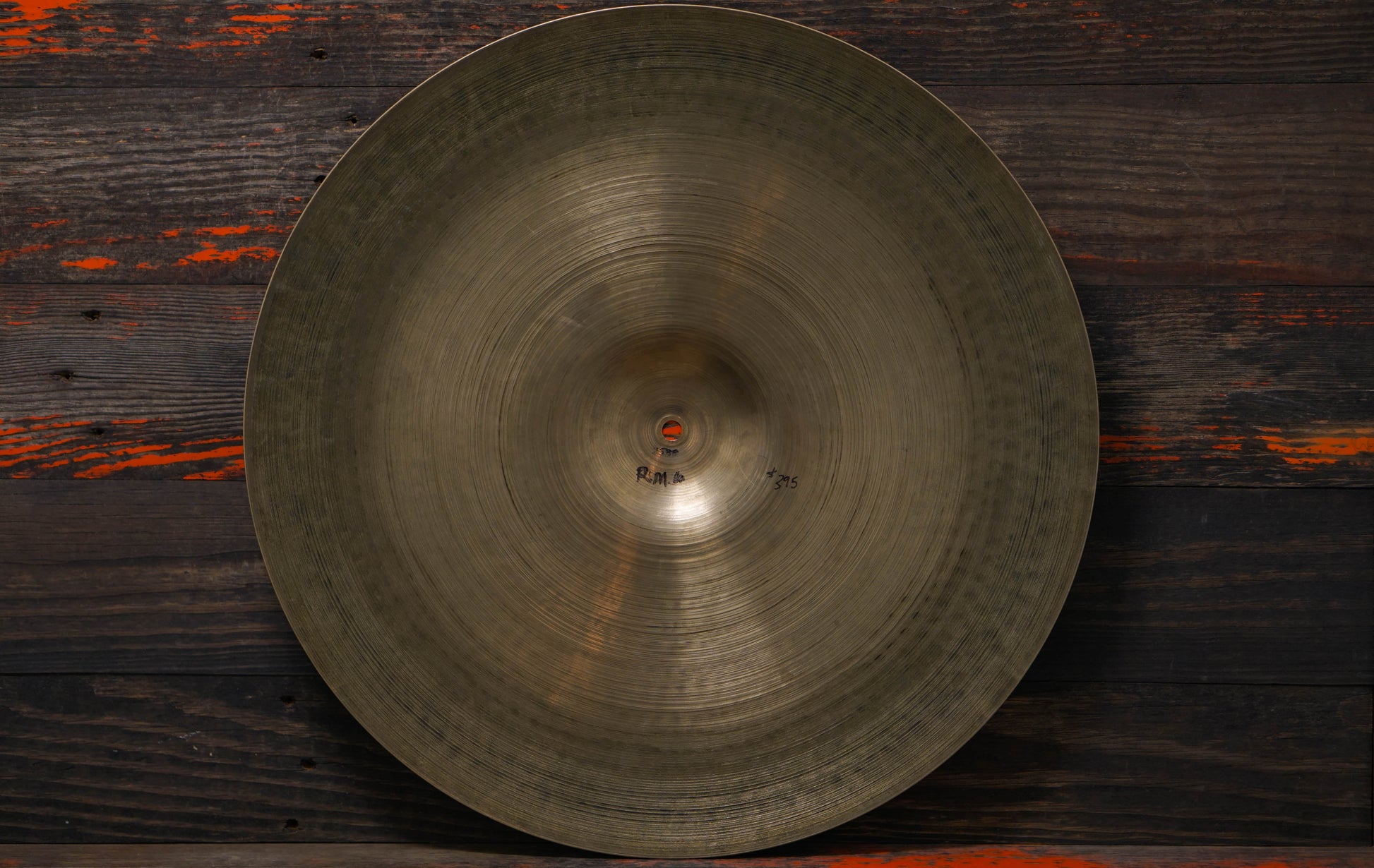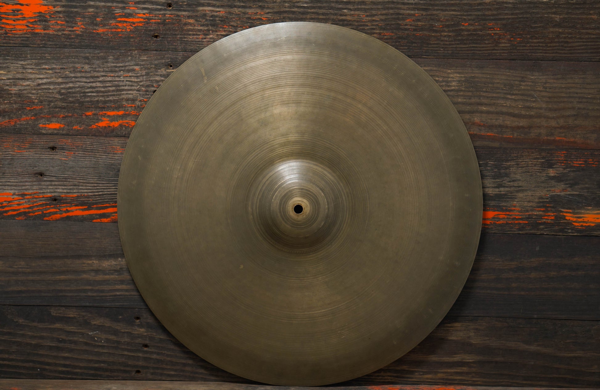 A 22" Avedis ride dating to the 1950s. Substantive open wash, nice clear, somewhat metallic stick attack, and strong bell. In great shape with medium-heavy patina.